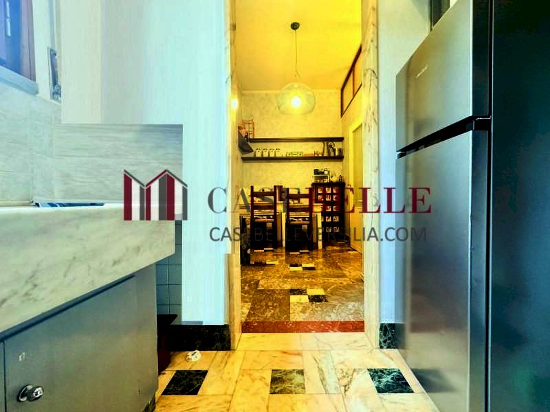 La cucina è abitabile, dotata di un pratico angolo cottura e di tutti gli elettrodomestici necessari, attiguamente si trova un ingresso secondario e la sala da pranzo, che si collega ad un ripostiglio ben organizzato, ideale per la gestione degli spazi durante il soggiorno.