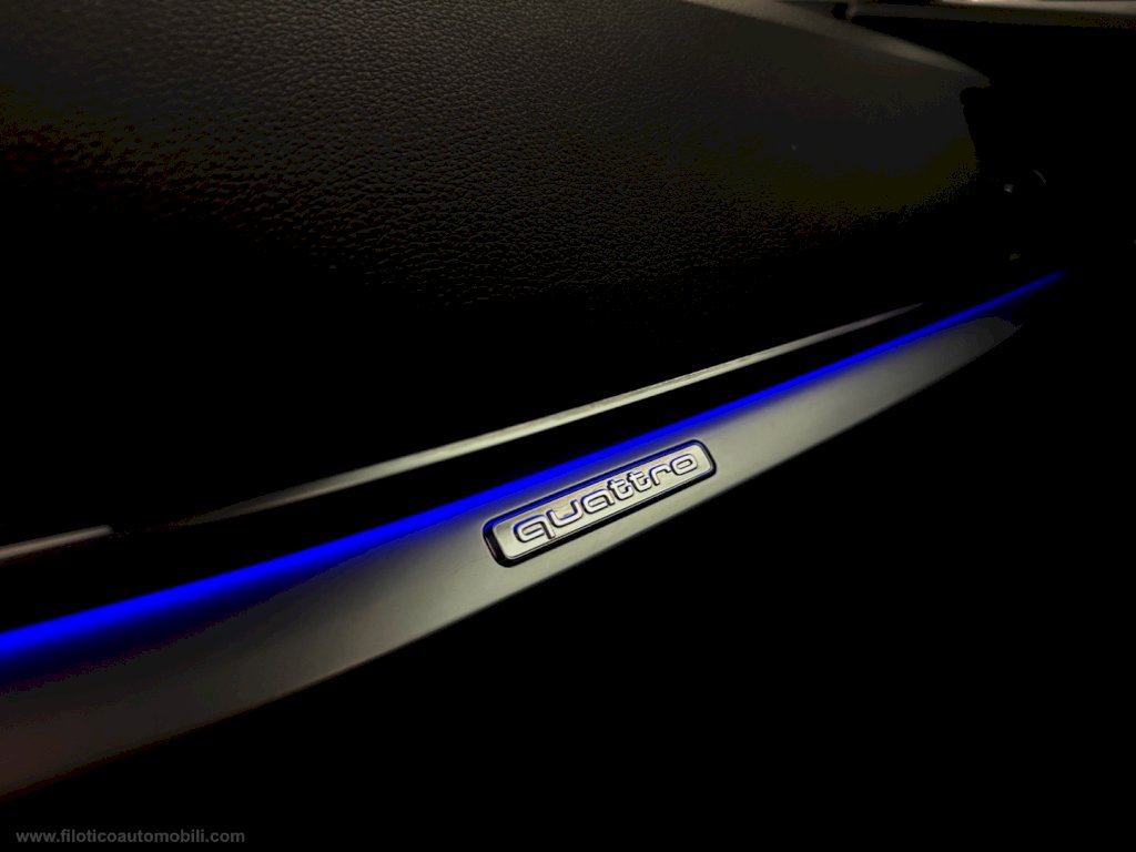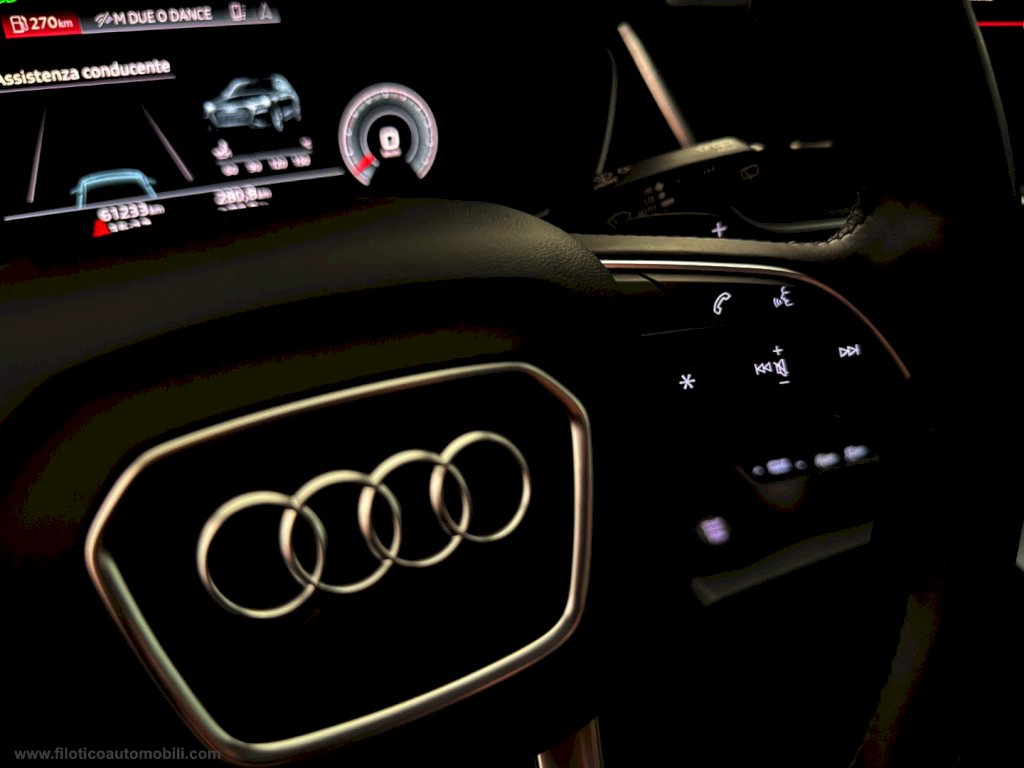Sistema di Navigazione cartografico con tecnologia CarPlay - AndroidAuto, Vetri laterali anteriori acustici, NERO CIELO GRIGIO TITANIO, Ruota di scorta ripiegabile con compress, Colore carrozzeria metallizzato, Proiettori a LED Audi Matrix con gruppi ottici, freccie dinamiche, Pacchetto luci ambiente plus, Pacchetto assistenza City, Chiave comfort con sbloccaggio portellon, Generic Color, Combinazione obbligatoria per S line S l, Generic Upholstery, GRIGIO DAYTONA PERLA, Safety Kit, Sensori di parcheggio anteriori e posteriori con Retrocamera, Luci Automatici, Cerchi in legea da 19 , Specchi regolabili e ripiegabili elettricamente, Full Optional.