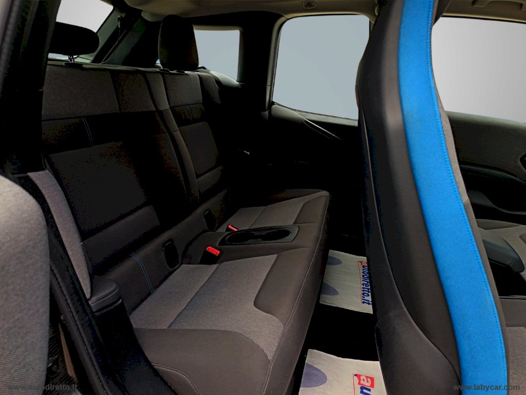 BMW i3 120Ah NEL COLORE CAPPARIS WHITE CON ACCENTI IN BMW I BLUE, DOTATA DI AIRBAGS, CERCHI IN LEGA STYLING 427, INDICATORE PRESSIONE PNEUMATICI, MODANATURE INTERNE ANDESITE SILVER OPACO, DISPOSITIVO DI RICARICA MULTIFASE, FAST CHARGING DC, RADIO DIGITALE DAB, CHIAMATA D'EMERGENZA, CONNECTED eDRIVE, CAVO DI RICARICA TRIFASE BMW, VOLANTE MULTIFUNZIONE, RETROVISORI AUTOANABBAGLIANTI REGOLABILI E RICIUDIBILI ELETTRICAMENTE, PORTABEVAND, BRACCIOLO CENTRALE ANTERIORE REGOLABILE, CLIMATIZZATORE AUTOMATICO BIZONA, CRUISE CONTROL CON FUNZIONE FRENO, SISTEMA DI INFOTAINMENT.