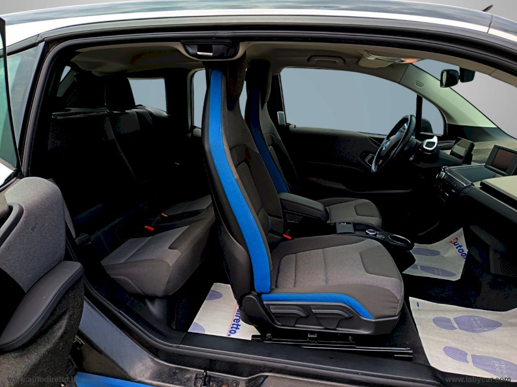 BMW i3 120Ah NEL COLORE CAPPARIS WHITE CON ACCENTI IN BMW I BLUE, DOTATA DI AIRBAGS, CERCHI IN LEGA STYLING 427, INDICATORE PRESSIONE PNEUMATICI, MODANATURE INTERNE ANDESITE SILVER OPACO, DISPOSITIVO DI RICARICA MULTIFASE, FAST CHARGING DC, RADIO DIGITALE DAB, CHIAMATA D'EMERGENZA, CONNECTED eDRIVE, CAVO DI RICARICA TRIFASE BMW, VOLANTE MULTIFUNZIONE, RETROVISORI AUTOANABBAGLIANTI REGOLABILI E RICIUDIBILI ELETTRICAMENTE, PORTABEVAND, BRACCIOLO CENTRALE ANTERIORE REGOLABILE, CLIMATIZZATORE AUTOMATICO BIZONA, CRUISE CONTROL CON FUNZIONE FRENO, SISTEMA DI INFOTAINMENT.