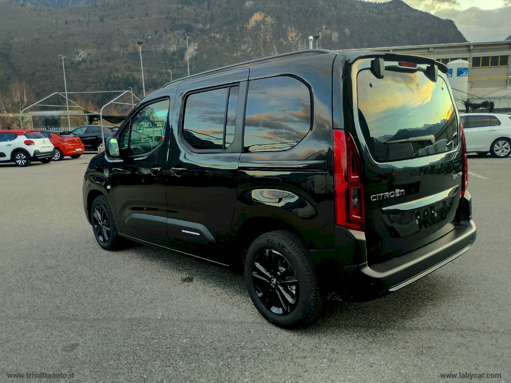 ABS + AFU + ESC + ASR, ESC + Hill Assist, Airbag frontali laterali e a tendina, Alzacristalli elettrici anteriori, Bocchette d'aria cromate, Calotte degli specchietti retrovisori esterni in nero, Cambio manuale a 6 marce, Chiavi standard (1 chiave elettronica + 1 chiave meccanica), Chiusura centralizzata con 2 PLIP HF, Citroen Connect SOS e Assistenza, Cruise Control e limitatore velocità, Fari anabbaglianti e abbaglianti automatici, Fendinebbia, Finestrini seconda fila apribili a compasso, Freno di stazionamento elettrico, Interni Urban Grey, Luci di marcia diurna e fari anteriori EcoLED, Lunotto posteriore con finestrino fisso sbrinatore e tergicristallo, Maniglie esterne in shiny black, Maniglie interne cromate, Porta laterale scorrevole destra, Radio digitale DAB con touch screen a colori da 10 , Bluetooth, Mirror Screen wireless, Rilevamento sottogonfiaggio, Safety Pack, Sedile conducente con regolazione con bracciolo, Sedile passeggero anteriore pieghevole con bracciolo, Sensori di parcheggio posteriori, Specchietti esterni elettrici e riscaldati, TPMS sistema di monitoraggio pressione gomme, Tavolino estraibile dal retro dei sedili anteriori, Tergicristallo anteriore automatico, Tettuccio con portaoggetti, Vani portaoggetti Top Box raffreddato, cassetto portaoggetti inferiore chiuso lato passeggero, Vano portaoggetti chiuso dietro la pulsantiera del conducente, Volante multifunzione, Doppia porta laterale con vetri a compasso in fila 2, Pack Comfort Style, Top rear vision Radio IVI Mid 10 , Vernice metallizzata Pearl Black