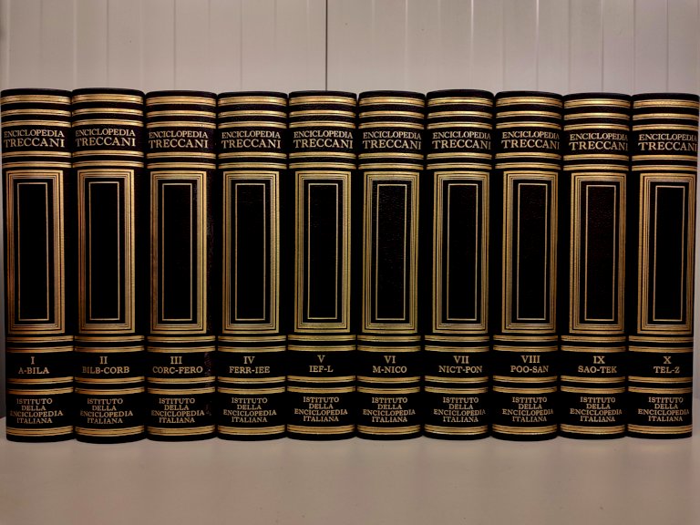 Enciclopedia Treccani - Prima edizione del 2010, 10 volumi. Condizioni perfette. euro 500,00.