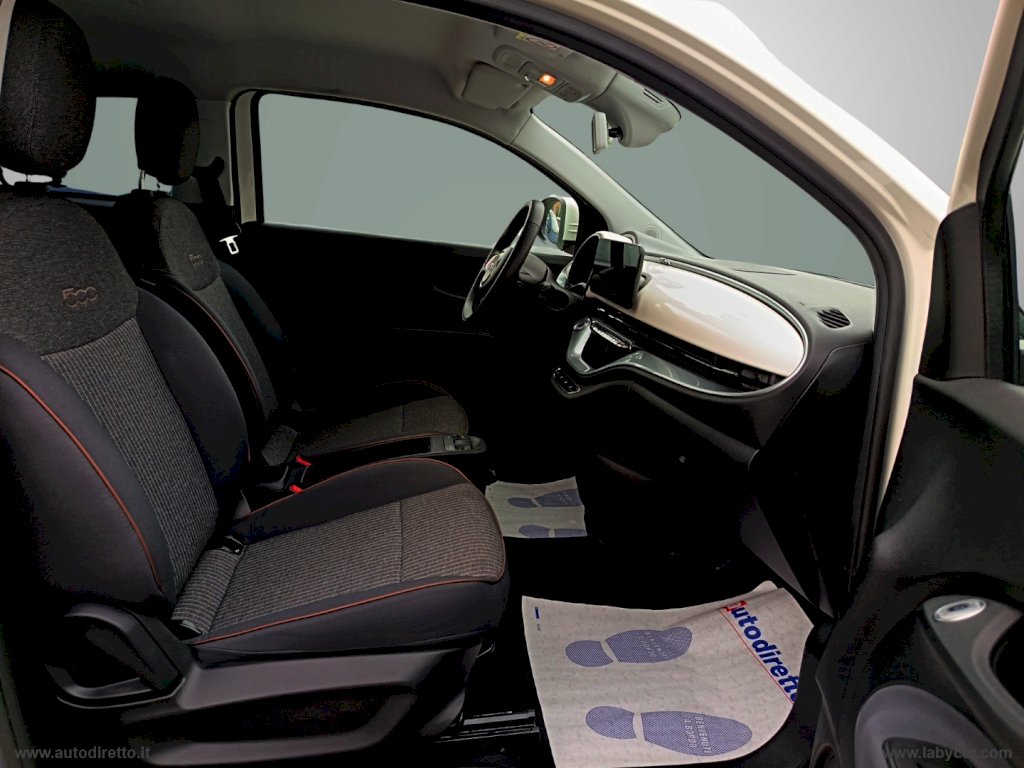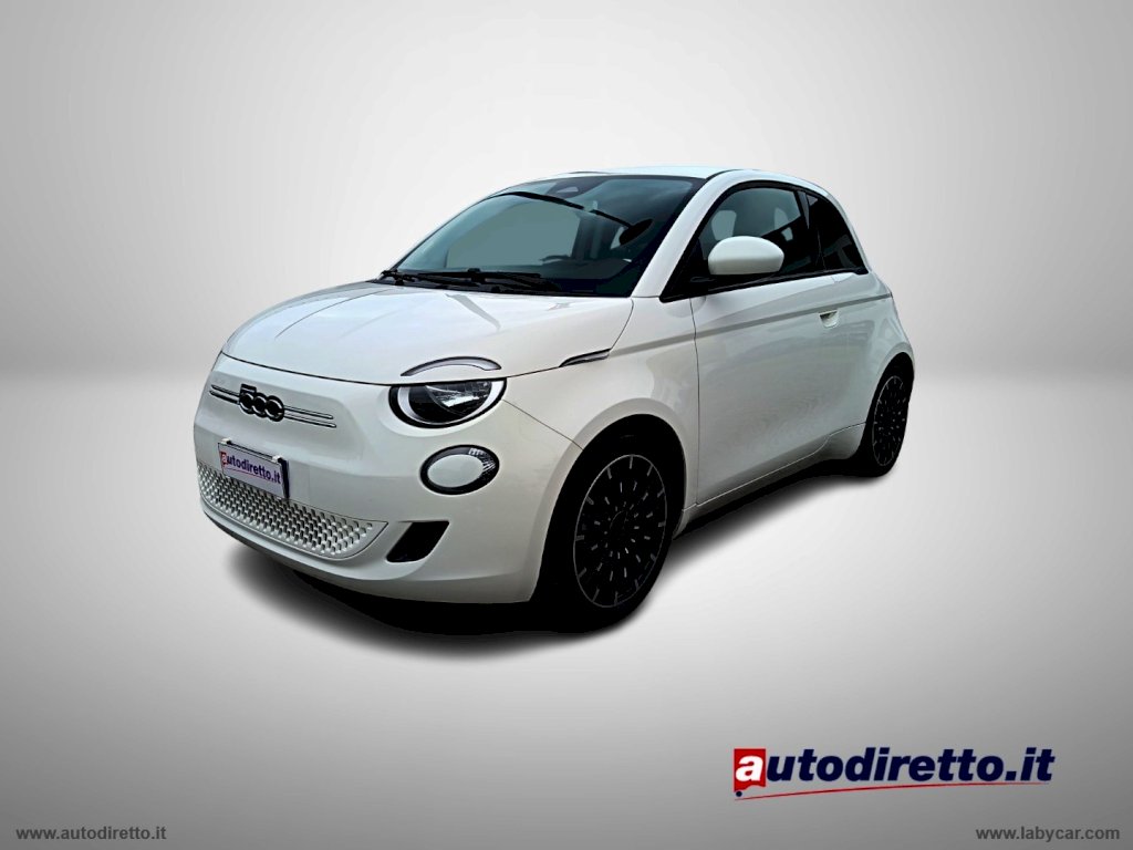 FIAT 500e ICON VERSIONE 3+1, CON DOPPIE CHIAVI, CAVO DI RICARICA DI TIPO C, AGGANCI ISOFIX, LANE CONTROL, APPLE CARPLAY E ANDROID AUTO, LIMITATORE DI VELOCITA', CRUISE CONTROL, VOLANTE MULTIFUNZIONE, CLIMA AUTOMATICO, eMODE E NAVIGATORE.