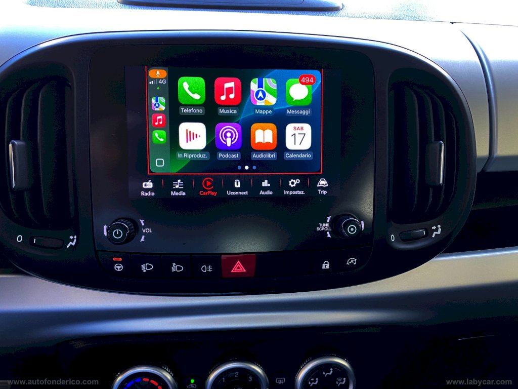 Gli optional: ABS, airbag, servosterzo, clima, vetri elettrici, comandi al volante, stereo di serie, cruise control, sensori di parcheggio posteriori, Apple CarPlay, fendinebbia, cerchi in lega.