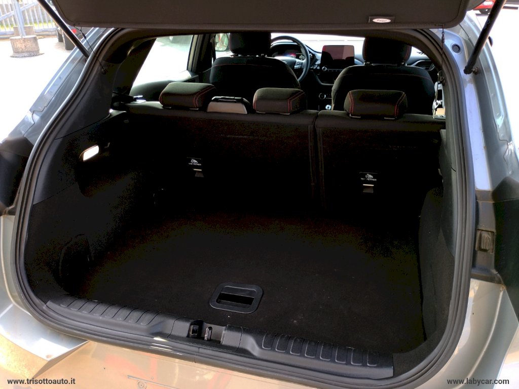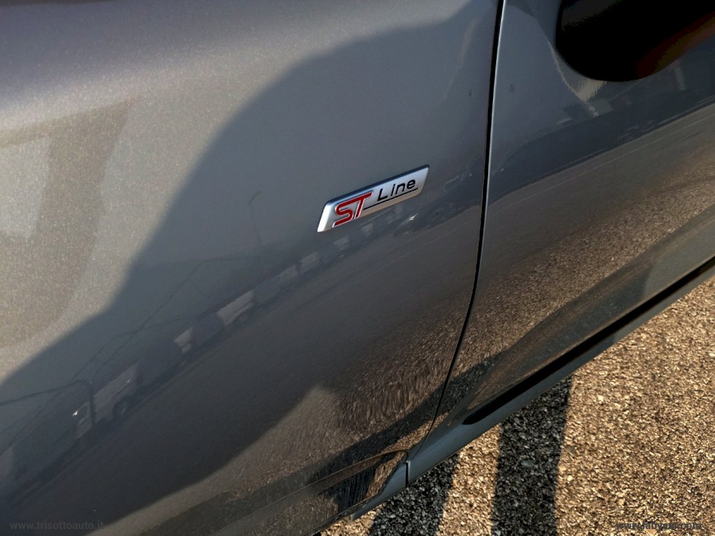 Mod. ST-LINE - Sedili in tessuto nero con impunture rosse - Vernice - Di Serie: - 45Q Navigatore satellitare - 543 Cruscotto digitale 12,3 - 601 Sensori di parcheggio posteriori - 681C Comfort Pack - 683E Front Camera Pack: Active City Stop, Driver Alert monitoraggio attenzione conducente, Lane Departure Warning, Lane keeping Aid, Speed Sign Recognition, Wrong way Alert - Attacchi di sicurezza Isofix integrati nei sedili posteriori - Caricatore Wireless per Smartphone - Cerchi in lega 17 - Climatizzatore a controllo automatico - Console centrale con bracciolo - Cruise control - Emergency Brake Assistant, EBA (assistenza alla frenata d'emergenza) - Fari a LED diurni - Fari anteriori anabbaglianti a LED - Fari automatici - Fold Flat System, sedili posteriori abbattibili 60 40 - Frenata automatica d'emergenza - Interruttore PADI, disattivazione airbag passeggero anteriore - Keyless Start (accensione a pulsante) - Kit riparazione pneumatici - Lane keeping Aid - Riconoscimento automatico segnali stradali - Sedili anteriori con regolazione in altezza e lombare - Sedili sportivi - Selettore modalità di guida (5 modalità) - Sospensioni sportive - SYNC 3: 2 porte USB, DAB, Mirroring IOS Android, Applink, Navigation System, SYNC 3 con radio touchsceen 8 e 7 speakers - Terminale di scarico cromato - Volante ergonomico in pelle desing Individual regolabile in altezza e profondità - Window Pack: Chiusura vetri laterali global closing con telecomando, Specchietti esterni riscaldabili e ripiegabili elettricamente, Vetri elettrici con onshot down UP (solo elettrici di serie) - NON DOTATA DEI SEGUENTI OPTIONAL: - Sensori di parcheggio anteriori