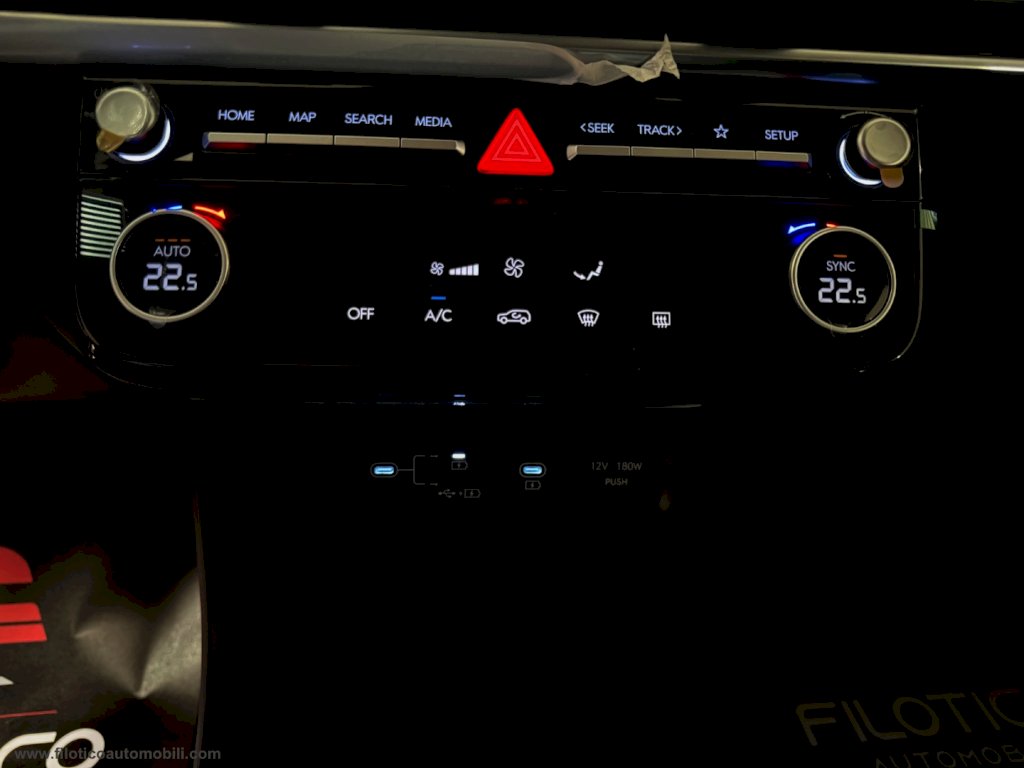 Optional Sistema di navigazione con display touchscreen da 12.3 con Connettività Apple CarPlay e Android Auto, Cluster SuperVision - Quadro strumenti TFT LCD ad alta definizione da 12.3'', Climatizzatore automatico 2 , Specchietto retrovisore elettrocromico, Smart Cruise Control (S.C.C.), Paddle al volante, Blind Spot Collision Avoidance,mantenimento della corsia (LKA), Sistema di monitoraggio pressione pneumatici (T.P.M.S.),Sensori di parcheggio anteriori e posteriori, Retrocamera,Sistema di mantenimento al centro della carreggiata (L.F.A),Sensore pioggia,Caricatore wireless per smartphone, Presa USB, Comandi audio al volante, Pulsante d'avviamento Start Button con Smart Key, Freno di stazionamento elettrico, Cambio shift-by-wire,, Vetri posteriori oscurati, Fari anteriori Full LED, Sensore crepuscolare, Luci diurne a LED, Luci di posizione a LED,Indicatori di direzione a LED integrati negli specchietti, Specchietti retrovisori regolabili e riscaldabili elettricamente ripiegabili elettricamente, Cerchi in lega leggera da 18 con pneumatici 235 55 R18, FULL OPTIONAL!
