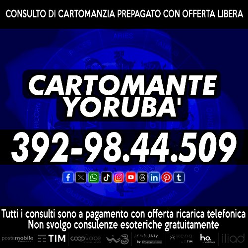 Offro la possibilità di un consulto telefonico di Cartomanzia chiamando il numero di cellulare che puoi visualizzare nella foto in allegato in questo annuncio. Prenota un appuntamento telefonico, chiama tutti i giorni (anche giorni festivi) dalle ore 9 alle 21. I consulti vengono svolti con la lettura e l'interpretazione dei Tarocchi (gli Arcani Maggiori). Il consulto di Cartomanzia è sempre prepagato con offerta libera ricarica telefonica o ricarica POSTEPAY.