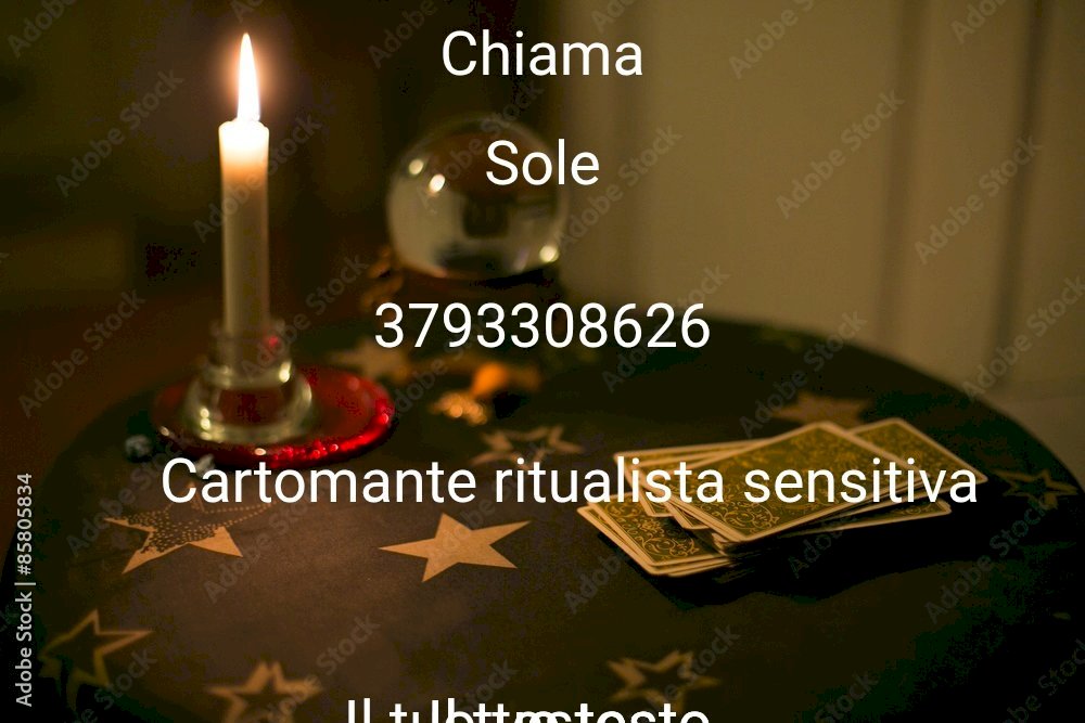 Sole di regala una domanda conoscitiva dalle 10 alle 19 sole cartomante sensitiva ritualista da anni svolgo cartomanzia ritualistica avvicinalamenti legamenti d'amore allontanamenti rivali fortuna lavoro denaro famiglia sblocchi energetici negatività ma difficili ma l'occhio fatture e protezioni se vuoi un consulto euro10 mezz'ora Chiamami con fiducia troverai una vera amica che ti può aiutare veramente se posso