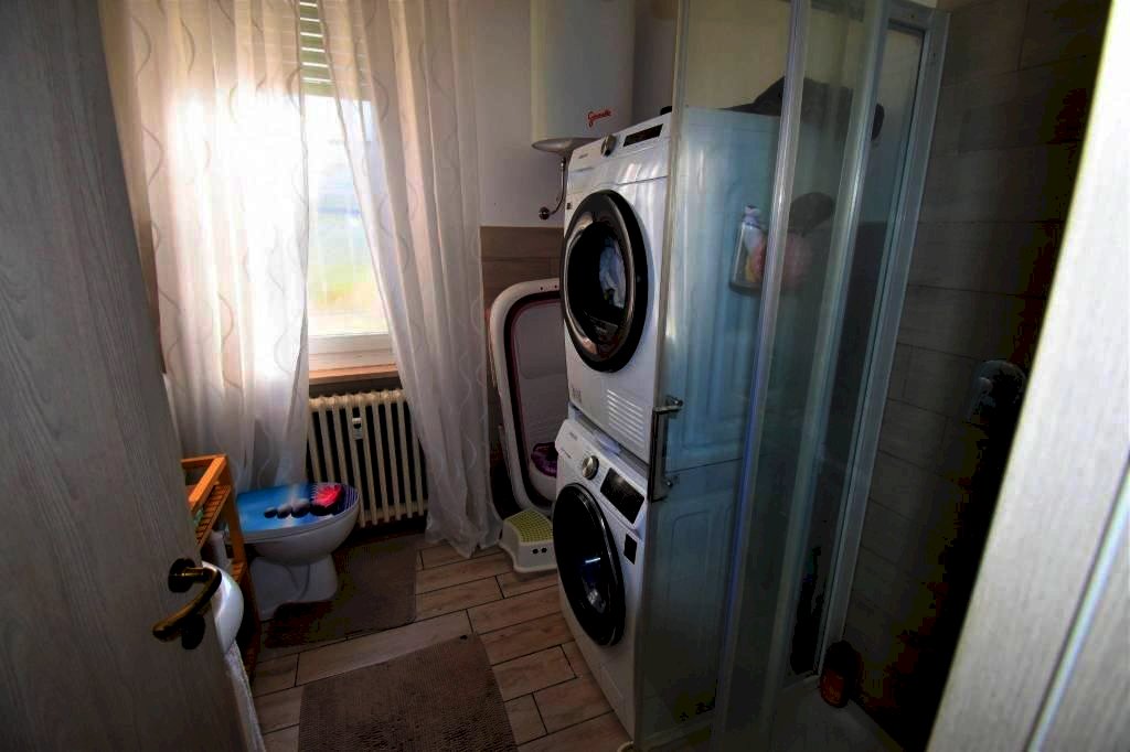 L'appartamento (con inclusi i condizionatori e la tenda da sole) è ubicato al 1° piano di un palazzo nel centro di Agliano Terme, posizione ideale per raggiungere i servizi che il paese offre. L’ingresso si apre su un'accogliente disimpegno, la cucina e un terrazzino panoramico. Il disimpegno è comunicante con il bagno e anche due camere da letto con vista sulle colline. La proprietà è completata da una cantina, un utilissimo box auto.