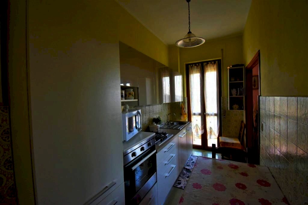 L’appartamento è collocato al secondo piano, di una palazzina in centro a Montegrosso d’Asti. Lo stabile, servito da ascensore, è ubicato nella parte alta del comune, nelle primissime vicinanze delle attività commerciali, dalla stazione ferroviaria, dell'ufficio postale e altri servizi essenziali che il paese offre. Il portoncino d'ingresso blindato, si apre sul luminoso disimpegno che divide la zona giorno e la zona notte. Il tinello spazioso è molto soleggiato grazie alla presenza della grande finestra e dell'accesso al balcone principale tramite la cucina semi-abitabile e di buone dimensioni. Il salotto arricchito da una porta finestra e due bagni funzionali, completano con le due camere da letto l’abitazione. Al piano seminterrato vi è la cantina e l’autorimessa, alle quali ci si può arrivare anche comodamente con l'ascensore.