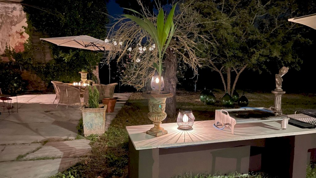 L'incantevole giardino, rigoglioso di verde, dispone di una cucina esterna completamente attrezzata e di una zona pranzo, perfetta per pasti tranquilli con amici e familiari. Accedendo al piano terra attraverso un pittoresco portico a galleria, troverete un ampio ingresso che conduce a una cucina e un bagno, insieme a tre stanze aggiuntive che offrono infinite potenzialità. Questa sezione della casa, che deve ancora essere completata, potrebbe facilmente essere trasformata in una deliziosa guesthouse o dependance privata.