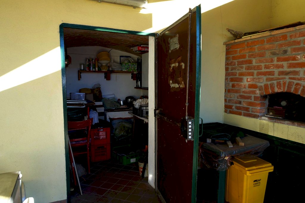 Proprio accanto, un pratico ripostiglio aggiunge una preziosa utilità, ideale per attrezzature, biciclette o attrezzi da giardinaggio.
