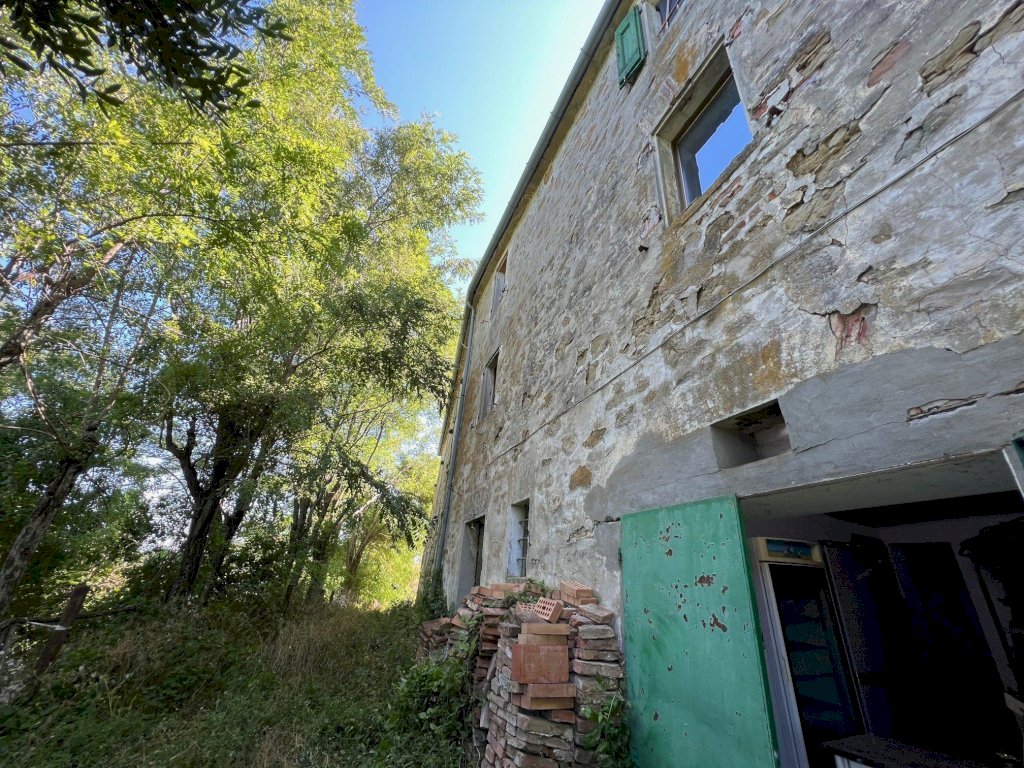 Al piano terra: cantine, deposito attrezzi, e cucina; al piano ammezzato: cantine, legnaie, due camere e bagno; al piano primo: due camere e bagno, attualmente ad uso abitativo.