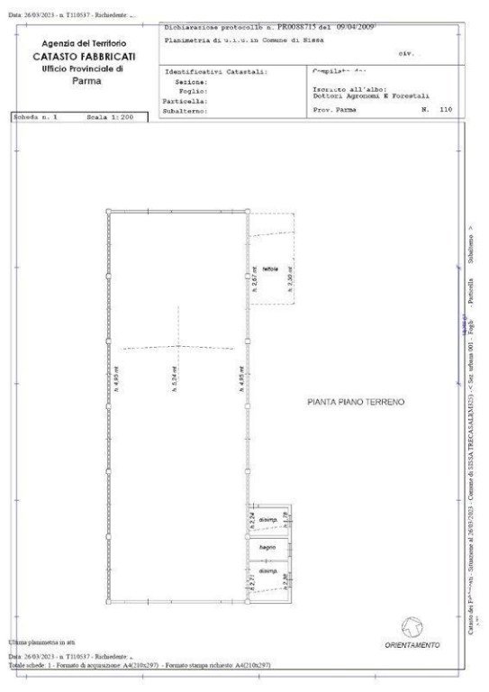 Sissa Trecasali: vendesi stalla di mq. 450 con terreno agricolo seminativo di 8 ha (80.240 mq) in unico corpo pianeggiante, seminativo con pozzo per irrigare i campi e con facile accesso su strada asfaltata. Ottima la qualità del terreno tra i più fertili della bassa parmense. Vicino al Comune di Sissa e a soli 20 km da Parma. NON IDONEO PER IMPIANTI FOTOVOLTAICO/AGRIVOLTAICO