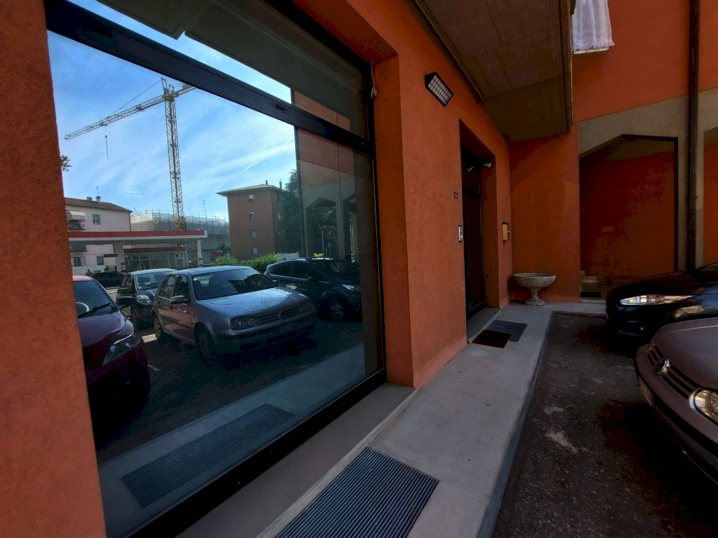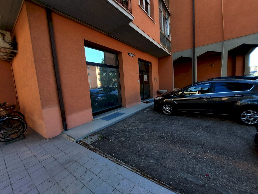 VIA DELLA RESISTENZA: in forte zona di passaggio sulla circonvallazione di Imola, locale ad uso ufficio e eventualmente anche centro estetico di circa 107 mq. posto al piano terreno con due vetrine composto da ingresso su disimpegno, cinque vani, antibagno e bagno, cortile con possibilità di parcheggio. Impianti autonomi, impianti certificati, basse spese condominiali, libero da subito. Rif 38