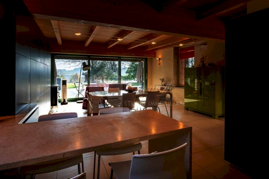La splendida villa - che viene venduta arredata - rappresenta il perfetto connubio tra tecnologia all'avanguardia, riservatezza e design di pregio, con la caratteristica di avere costi di gestione praticamente azzerati. La villa è stata costruita seguendo principi ecologici, con un progetto studiato per ottimizzare il risparmio energetico e il benessere degli occupanti. Questo implica un'attenta considerazione di fattori come l'orientamento, l'isolamento termico, la ventilazione naturale e l'uso di materiali sostenibili, come descritto nella bioedilizia o bioarchitettura. I materiali utilizzati, quali la calce naturale ed il legno, sono elementi con ottime proprietà igroscopiche, capaci di assorbire e rilasciare umidità per mantenere un ambiente all’interno della villa sano e confortevole. L'ingresso principale, privato e incorniciato dal giardino, conduce a una residenza su tre livelli progettata per il massimo benessere e uno stile di vita contemporaneo. Il piano terreno si apre con uno stupendo open-space moderno - il quale si affaccia sul porticato esterno che durante le calde giornate estive, invita a pranzi e cene conviviali - composto da un'ampia e luminosa sala da pranzo con grandi vetrate che la caratterizzano e una cucina a vista efficiente (arredata, inclusa nel prezzo); completa il piano un comodo disimpegno, un bagno, un largo vano scala, un ampio soggiorno ben illuminato, 3 camere spaziose, anti-bagno / bagno e un ripostiglio funzionale. Salendo al piano primo, troviamo un arioso disimpegno/studio, due grandi camere da letto, un bagno, una lavanderia e una luminosa camera master con bagno en suite; tutto il piano è arricchito da numerose porte-finestre che permettono di accedere comodamente, da ogni ambiente, a una generosa balconata (con pavimentazione in legno) che si affaccia sulle dolci colline monferrine. Il piano interrato è formato da un garage capace di ospitare comodamente fino a quattro automobili, centrale termica a gas-metano, un locale adibito a centrale fotovoltaico, un locale deposito, un locale cantina, un bagno e una capiente vasca di raccolta acque meteoriche. Antistante la villa, troviamo una pratica tettoia in legno, costruita in armonia con lo stile della casa, progettata per offrire uno spazio ricreativo e multifunzionale per godersi al meglio gli spazi esterni e/o adatta per il ricovero della legna e/o per gli attrezzi da giardino. Terreno ed ente urbano, in un unico corpo con il fabbricato, di totali 9.154 mq (attualmente adibito a bosco ceduo con querce, acacie, bagolari e tigli); vi sono presenti anche piante da frutta (pesco, pero, fichi, meli, albicocchi, castagno. Sono presenti circa 15 piante di ulivo e alcune piante di vite da tavola. Il giardino è ideale per intrattenere gli ospiti durante le serate estive, offre il massimo agio grazie alla comodità di raggiungere il verde direttamente dall’ariosa cucina. La dimora è l’ideale per chi cerca una residenza immersa nella quiete della campagna con un’assoluta privacy, ma dotata di tutti i comfort per accogliere una famiglia, amici e ospiti in un contesto autentico e suggestivo. Lo spazio e le potenzialità dell'area esterna alla villa, offrono la possibilità per la realizzazione di una piscina! La proprietà dista: 0,5 km dal centro-paese di Azzano d’Asti, 7 km dal centro di Asti, 10 km dal casello Asti Est dell’Autostrada Torino-Piacenza, 15 km dai campi da golf del Golf Feudo di Asti, 30 km da Alba e 60 km da Torino. Note/info: • Impianto fotovoltaico da 8 kW con una batteria da 12 kW di accumulo. • Antifurto interno, perimetrale ed esterno (giardino). • Pannelli solari per la produzione di acqua calda. • Conformità degli impianti. • Riscaldamento a pavimento. • Infissi in alluminio con taglio termico, doppi-vetri anti-sfondamento, vetrocamera con gas basso emissivo. • Stufa a legna, fuoco a vista, con forno e piastra. l'esclusivo sistema DeManincor permette di ottenere alti rendimenti, basse emissioni, grande autonomia e potenze elevate. • Internet via radio. • Videocitofono. • Cancello elettrico. • Porta blindata in garage. • Impianto climatizzazione (freddo/caldo) Daikin che permette di controllare il climatizzatore da remoto.