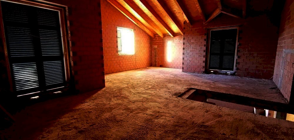 Villetta indip. 3 lati, DA ULTIMARE, di nuova costruzione con giardino privato. Piano interrato: locale di sgombero, w.c., loc. tecnico e autorimessa. Piano terra: soggiorno, cucina, disimpegno, bagno, 2 camere da letto e bagno. Piano sottotetto: soggiorno con angolo cottura, disimpegno, bagno e 2 camere da letto.