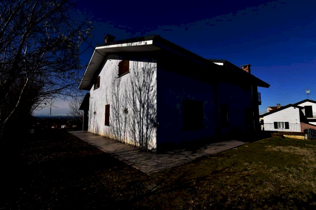 Nel cuore del Monferrato, tra colline morbide e silenzi rarefatti, la proprietà si inserisce con naturalezza in un contesto paesaggistico di grande armonia. La posizione panoramica regala ampie viste aperte sul verde e sul Monviso, creando un dialogo costante tra architettura e natura. La villa presenta linee sobrie e contemporanee, con facciate chiare e tetto a falde, e accoglie interni luminosi e ben proporzionati, dove lo stile moderno incontra il calore del mattone a vista, capaci di conferire continuità e carattere agli ambienti. Gli spazi interni sono distribuiti su più livelli e pensati per offrire comfort, privacy e massima flessibilità con tre piani così composti: Piano seminterrato, locale di sgombero – locale caldaia – locale cantina – autorimessa – bagno – disimpegno e due locali spaziosi adatti per una tavernetta o per relax. Piano terra, ingresso living che si apre direttamente su un soggiorno con ampia vetrata vista Alpi – cucina abitabile, luminosa e con vista mozzafiato, collegata direttamente con un ampio porticato che rappresenta una soluzione architettonica ideale per chi ama la convivialità e la vita all'aria aperta, estendendo la superficie vivibile della casa durante la bella stagione – disimpegno – 2 ampie camere da letto e bagno. Piano primo: arioso disimpegno – 2 camere da letto di cui una con affaccio su un terrazzo coperto che offre un'estensione preziosa dello spazio abitativo, creando un ambiente intimo e protetto – bagno e grande locale sottotetto con altezza di 2,15 m. All’esterno, il giardino avvolge la casa in un contesto di privacy assoluta e sarebbe adatto per ospitare una piscina, ottimale per accogliere e vivere gli spazi all’aperto nelle belle stagioni. La proprietà è adatta a chi ricerca una residenza di rappresentanza, una dimora multifamiliare o un progetto abitativo di vacanza, esclusivo, in un'area dove quiete e comodità si intrecciano.