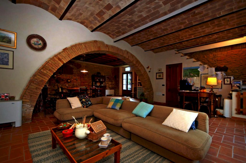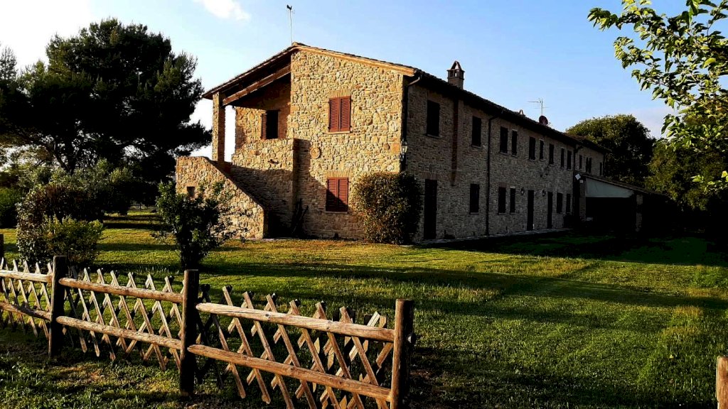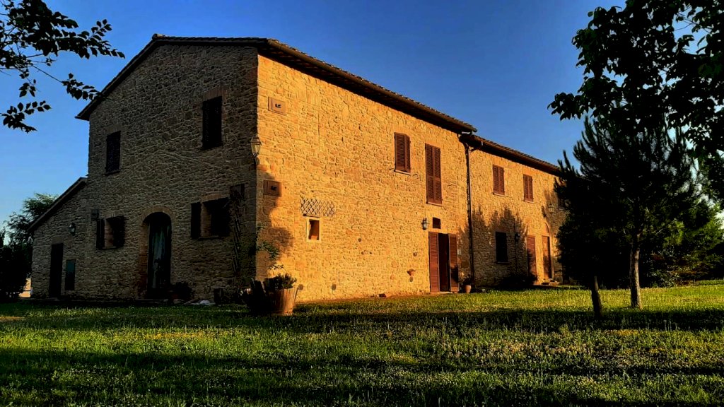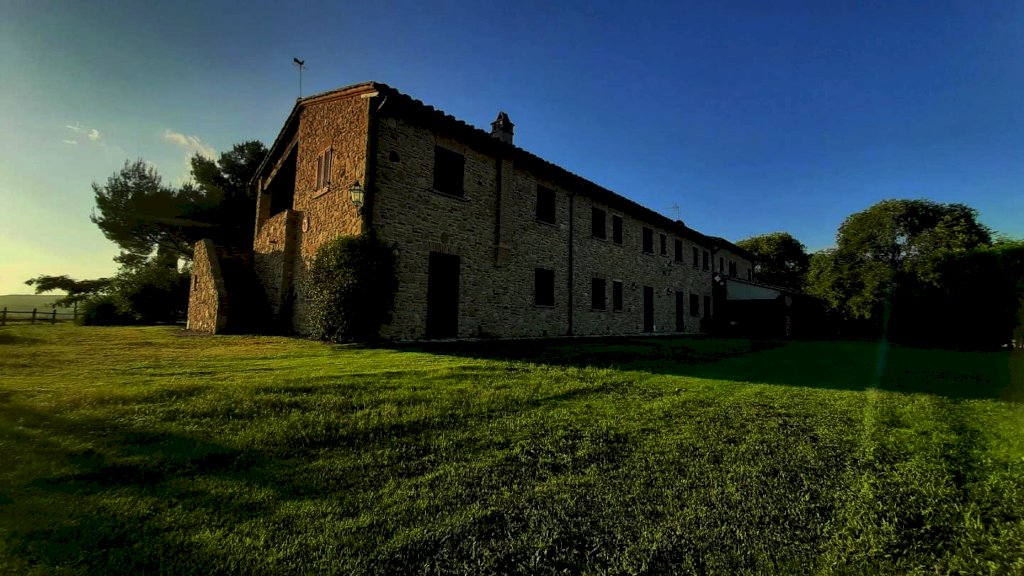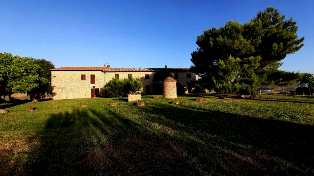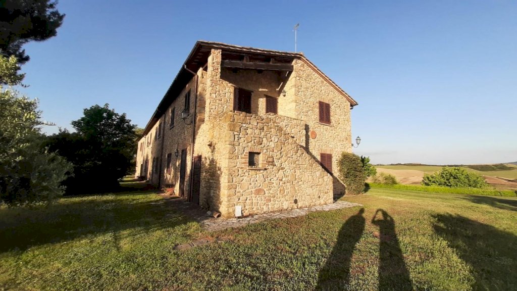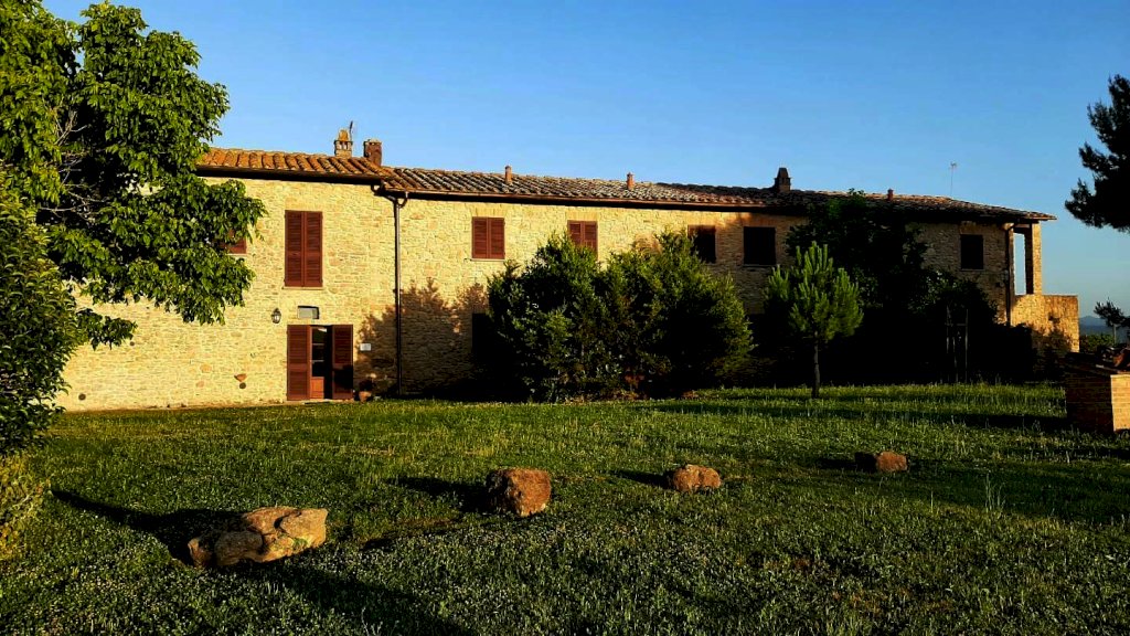 Volterra: ubicato nel Comune di Volterra, in posizione dominante circondato dalla bellissima campagna e dalle dolci colline Toscane, con vista sulla storica città Etrusca, vendesi ANTICO CASALE della superficie di 700 mq circa. Il fabbricato è circondato da un favoloso prato con piante di vario tipo e una piscina dalla quale ammirare il panorama a 360 gradi. Il fabbricato è in pietra originale delle case Toscane della zona, a forma rettangolare, è composto da un corpo unico, disposto su due livelli. E' stato finemente ristrutturato da pochi anni nel rispetto dello stile locale. Composto da n. 7 appartamenti, di cui uno adibito a casa padronale disposta su p. terreno e primo e sei unità per attività agrituristica (n.3 Trilocali al p. terreno + n. 3 Trilocali al p. primo). Tutti gli appartamenti sono in perfetto stato di manutenzione. La casa padronale è molto bella, caratterizzata da archi, travi-travicelli e mezzane, oltre a pietra faccia vista e pavimentazione in cotto - composta a piano terra da un grande salone con zona cottura a vista, della superficie di oltre 60 mq, più servizio igienico; mentre al piano superiore abbiamo ampio salone soggiorno, tre camere e bagno. La parte immobiliare di questa proprietà si trova al centro rispetto ai 110 ettari di terreno seminativo che la circondano, ideale per la coltivazione di tutti i tipi di foraggi. IDEALE PER CHI CERCA IL CONTATTO CON LA NATURA E LA STORIA. Agriturismo in vendita - 24 vani - 700 mq - Rif. 135 AGRITURISMO 7 APP. TI + 110 ha