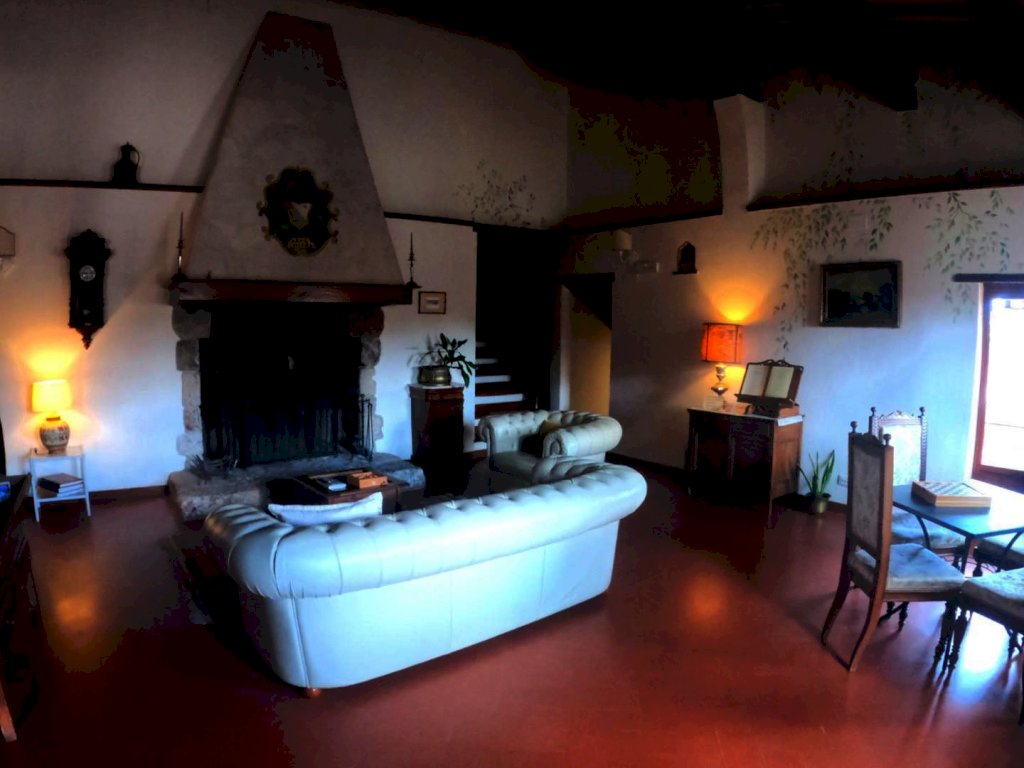 all’ interno del primo piano troviamo una grande Hall con focolare e piccolo terrazzo