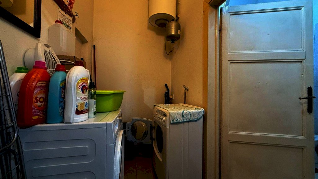 L'appartamento è composto da un ampio soggiorno con angolo cottura, una spaziosa camera matrimoniale con un piccolo ripostiglio, un bagno con doccia e un ampio disimpegno adibito a lavanderia.