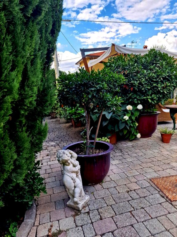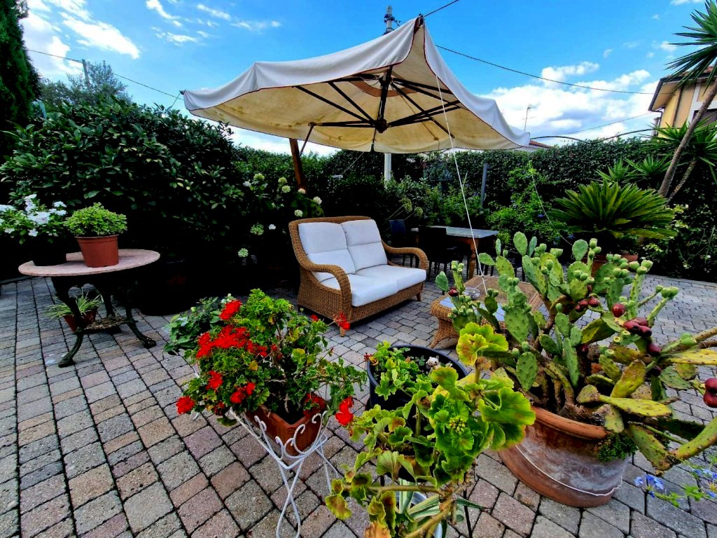 Composto da : soggiorno con angolo cottura, 2 ampie camere, bagno. Al piano terra un ampio giardino ben curato, arredato e piastrallato di circa 100 mq. comodo per cene all' aperto e zona relax.