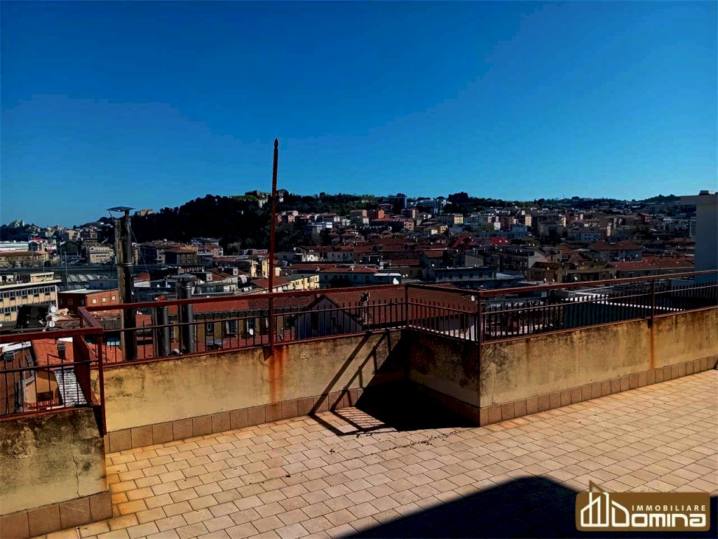 L'immobile è composto come segue: ampio ingresso, ampio salone con accesso al terrazzo panoramico con vista sulla città, cucina abitabile con balcone, 3 ampissime camere matrimoniali, bagno, ripostiglio e cantina.