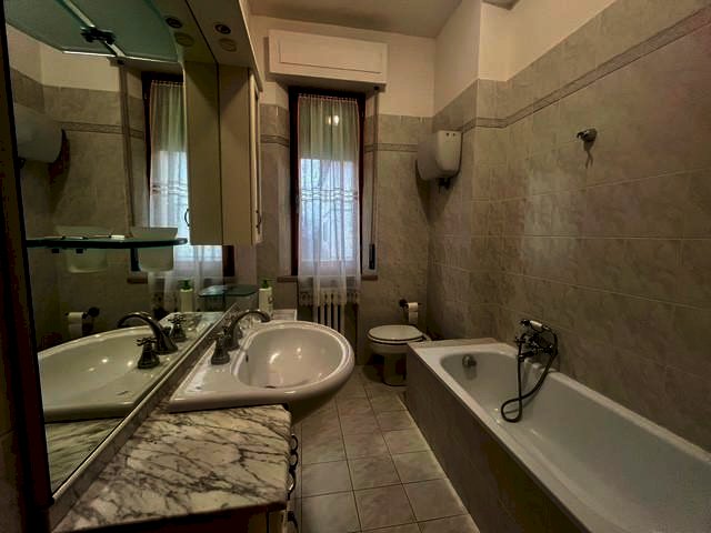 Appartamento con giardino in zona residenziale al piano primo di piccola palazzina. Composto internamente da ingresso, sala da pranzo con balcone, cucinotto, soggiorno con balcone, due camera matrimoniali, bagno finestrato. A piano terreno ampio resede utilizzabile come parcheggio per due auto, giardino privato di circa 100 mq, grande garage utilizzabile come taverna. Buone condizioni generali, impianti autonomi. Zona particolarmente silenziosa e vicina a tutti i principali servizi.
