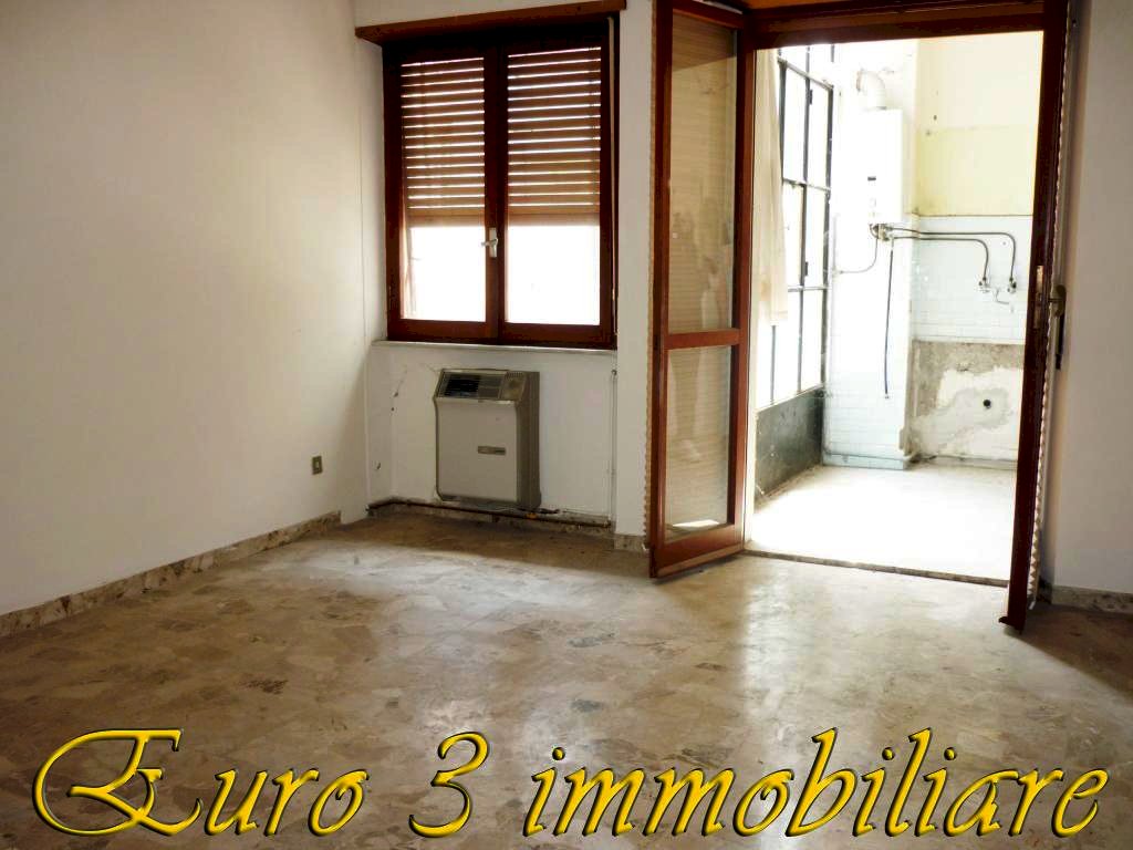 In palazzina in cemento armato nei pressi di corso Vittorio Emanuele, appartamento sito al quinto piano con ascensore, di mq. 140 circa, suddiviso in: ingresso-disimpegno, cucina abitabile con retrocucina, terrazzina coperta verandata, 3 camere, bagno, 2 balconi con vista panoramica sul centro storico.