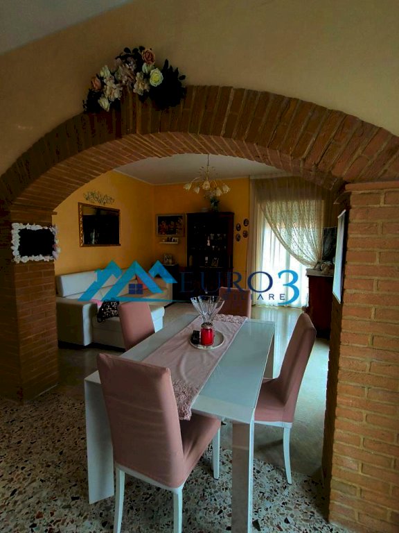 Appartamento completamente ristrutturato, di mq. 100 con garage e fondaco, sito al primo piano sopra al rialzato, suddiviso internamente in: ingresso-disimpegno, soggiorno con angolo cottura, 2 camere, bagno, 3 balconi.