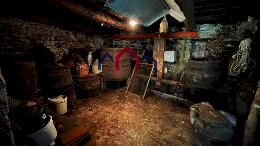 Si compone al piano seminterrato da resede esclusiva antistante l'edificio, cantina e legnaia con le scale per l'accesso all'abitazione; al piano terra (o mezzanino) abbiamo un altra cantina; al piano primo troviamo il terrazzo abitabile antistante ed un ripostiglio esterno, poi entriamo nella casa con ingresso, cucina con camino, camera, disimpegno, bagno con doccia ed altra camera.