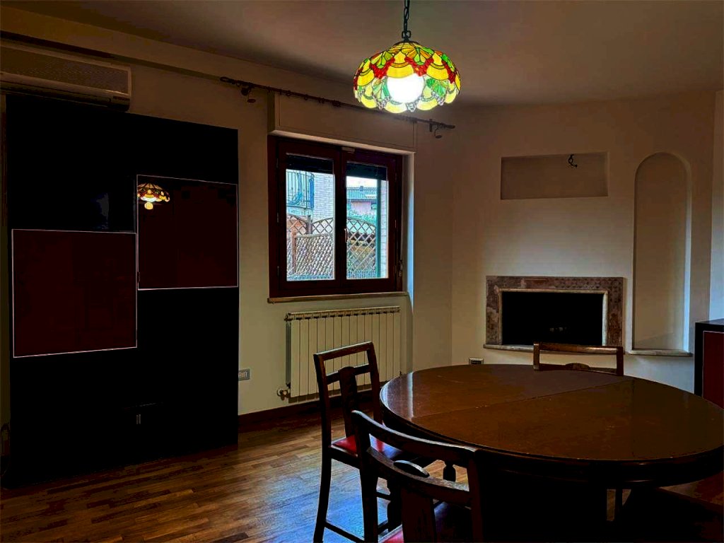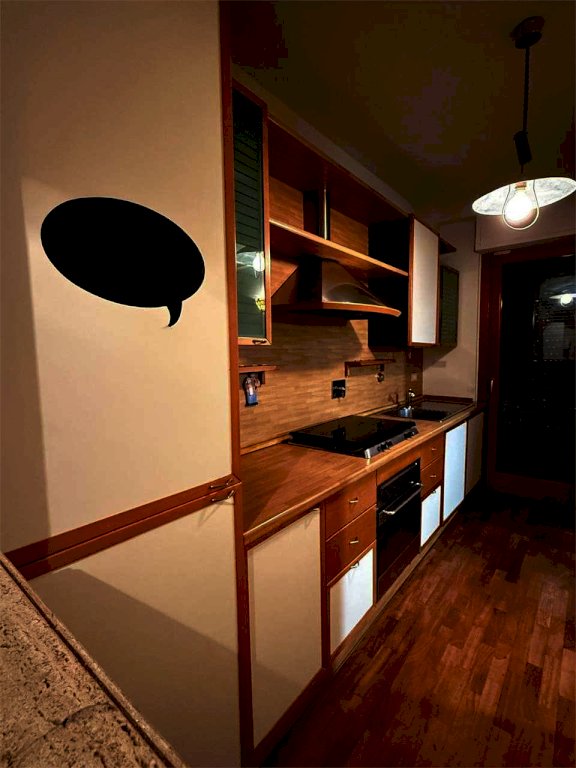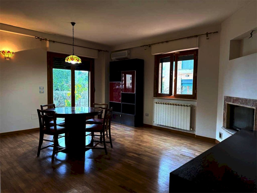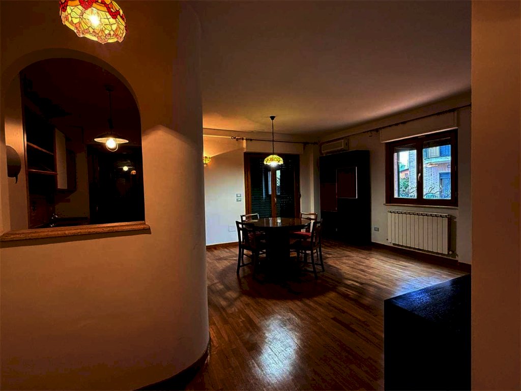 L'immobile, caratterizzato da ottime finiture con pavimenti in parquet in tutti gli ambienti si compone di un luminoso soggiorno con camino, cucinotto, tre ampie camere da letto e due bagni di cui uno finestrato .