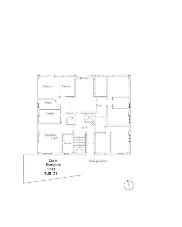 L'appartamento è caratterizzato da una corte esclusiva lastricata in parte adibita a giardino.