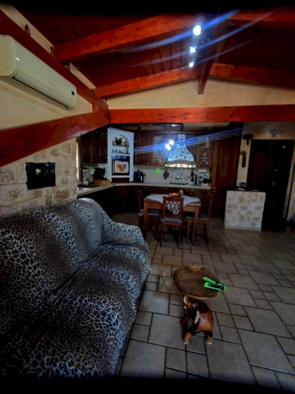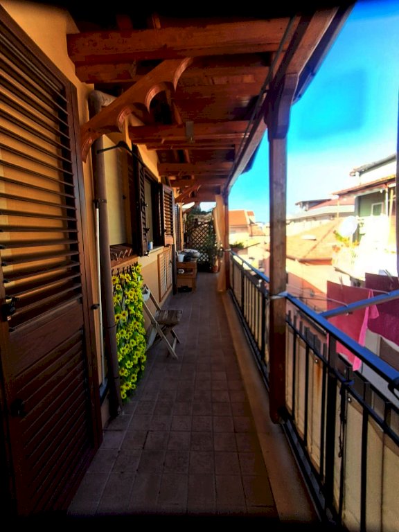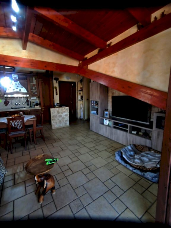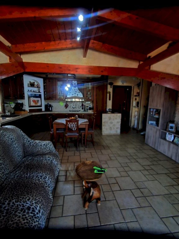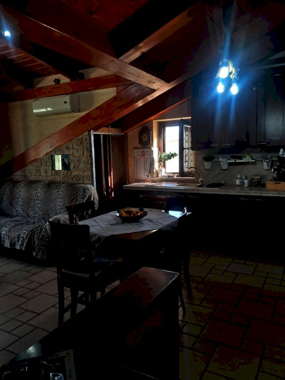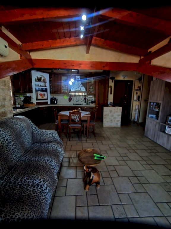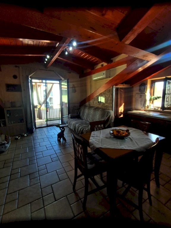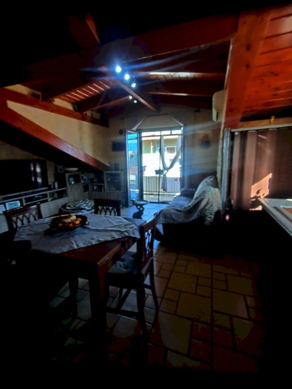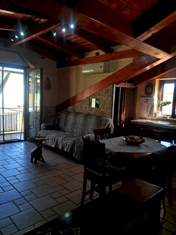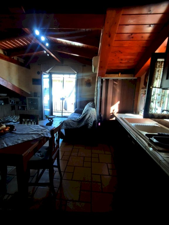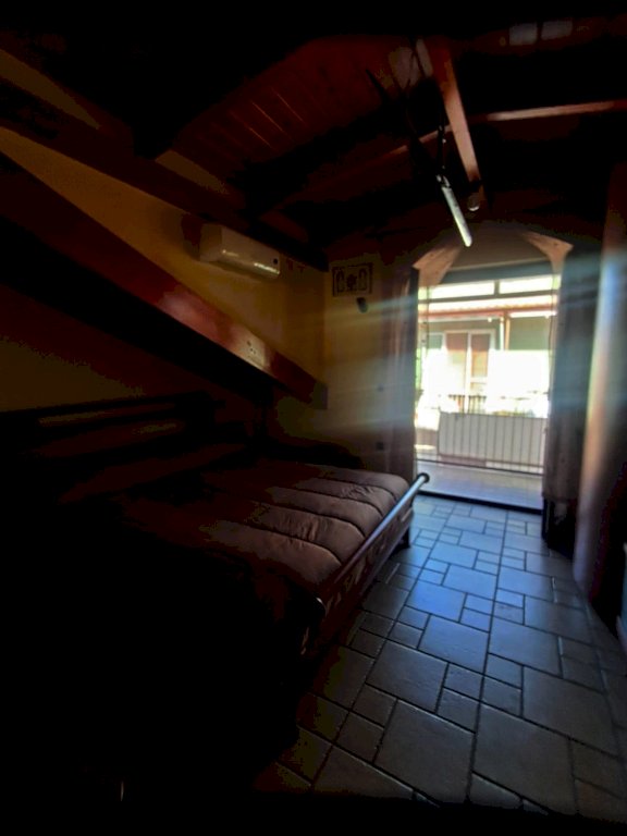 L''immobile si compone di 4 locali, con una superficie di circa 80 mq: ingresso in AMPIO SOGGIORNO con angolo cucina e ripostiglio e accesso diretto ad un balcone coperto; tramite corridoio si accede al reparto notte dove si trovano due camerine singole di cui una con soppalco, bagno con doccia e una camera matrimoniale con balcone. Il tutto caratterizzato da soffitti con travi a vista in stile mansarda.