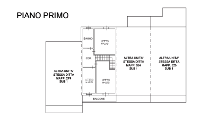 locale cucina - soggiorno dal quale si accede ad un disimpegno verso il bagno/lavanderia e l'autorimessa; uscendo dall'autorimessa è presente un ulteriore cortiletto pavimentato in autobloccanti. Salendo le scale, al piano primo, si trova un disimpegno dal quale si accede a due camere da letto doppie ed una singola ed il bagno.