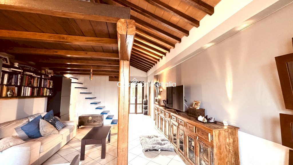 Uno splendido Loft in stile rustico, con giardino frontale e resede tergale.
