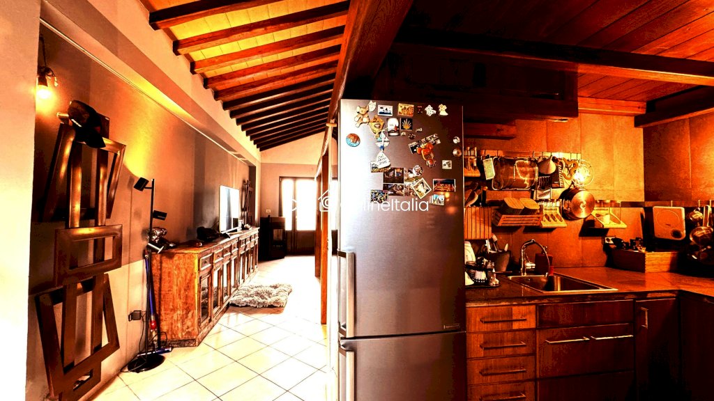 Sempre con finiture rustiche, troviamo un cucinotto finestrato, un servizio igienico con doccia finestrato ed un resede tergale.