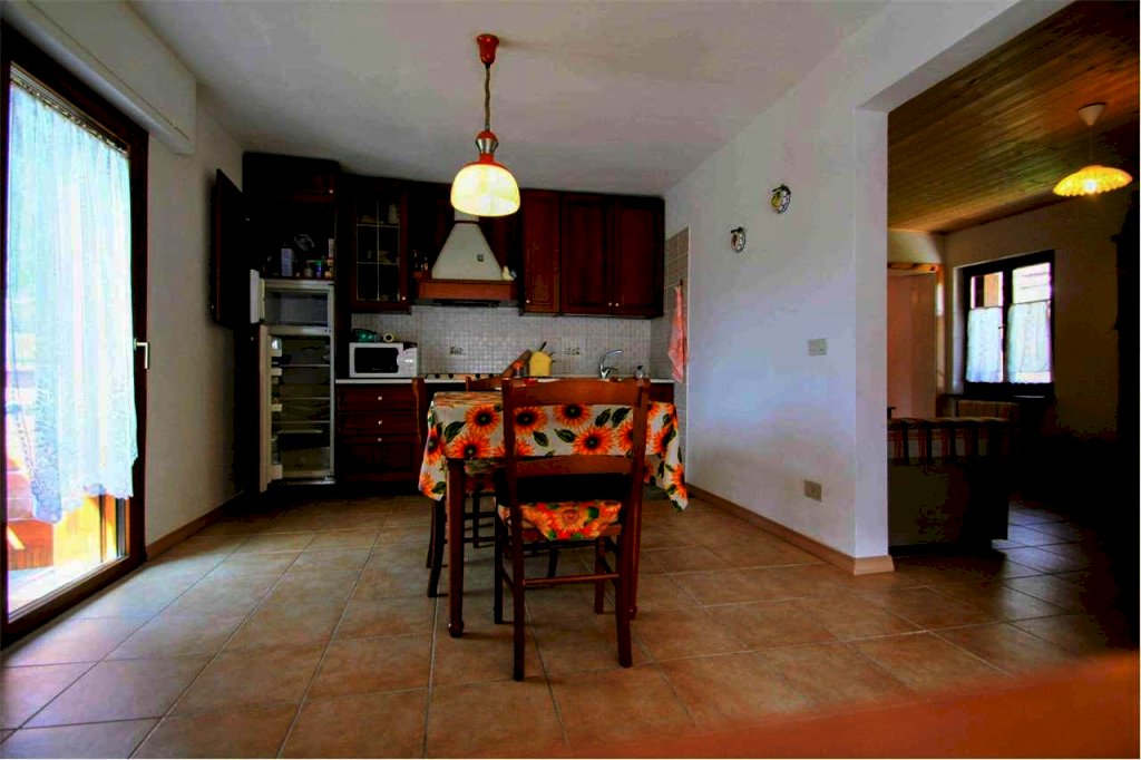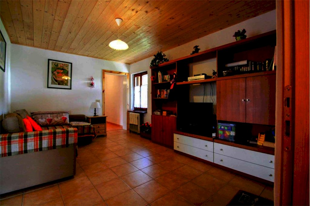 L'appartamento occupa tutto il secondo e ultimo piano, ha 2 camere matrimoniali, un bagno appena rifatto, una zona giorno con cucina abitabile e panoramiche finestre sulla valle. Impianti e serramenti sono stati sostituiti recentemente. C'è una stufa a pellet quale fonte di riscaldamento.