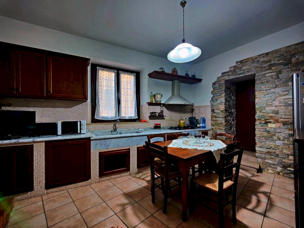 Da questo spazio si apre un luminoso doppio soggiorno, seguito da una cucina abitabile impreziosita da un caratteristico camino e dotata di un pratico ripostiglio. La zona notte offre due spaziose camere matrimoniali e due bagni finestrati, uno completo di doccia e l’altro da rivedere. Un ulteriore vano di servizio, facilmente trasformabile in lavanderia, completa la funzionalità della casa.