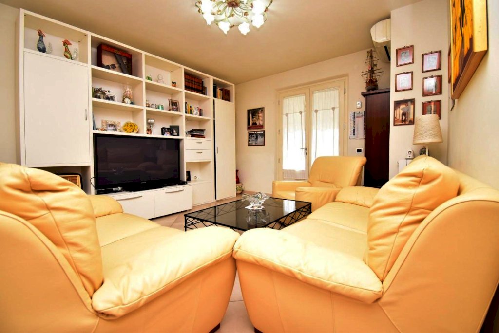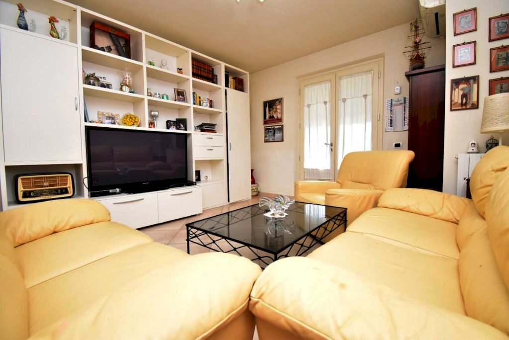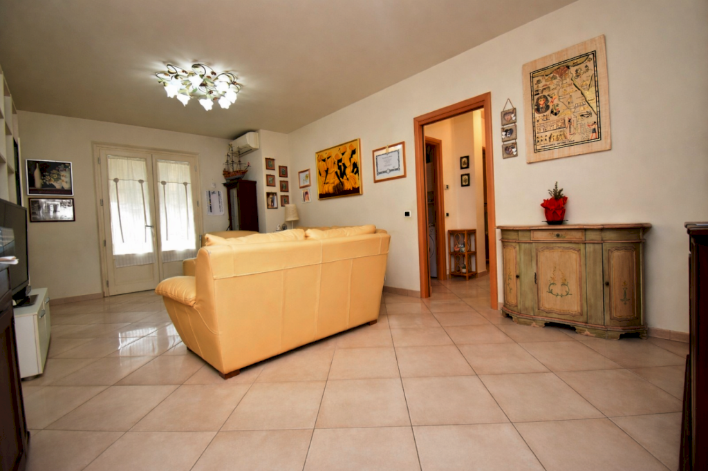 L'accesso introduce nella zona giorno, luminosa e ben proporzionata, affiancata da ambiente cucina. La zona notte comprende due camere di generose dimensioni e un servizio finestrato. Gli spazi risultano razionali e adatti sia come prima casa sia come soluzione di appoggio in zona mare.