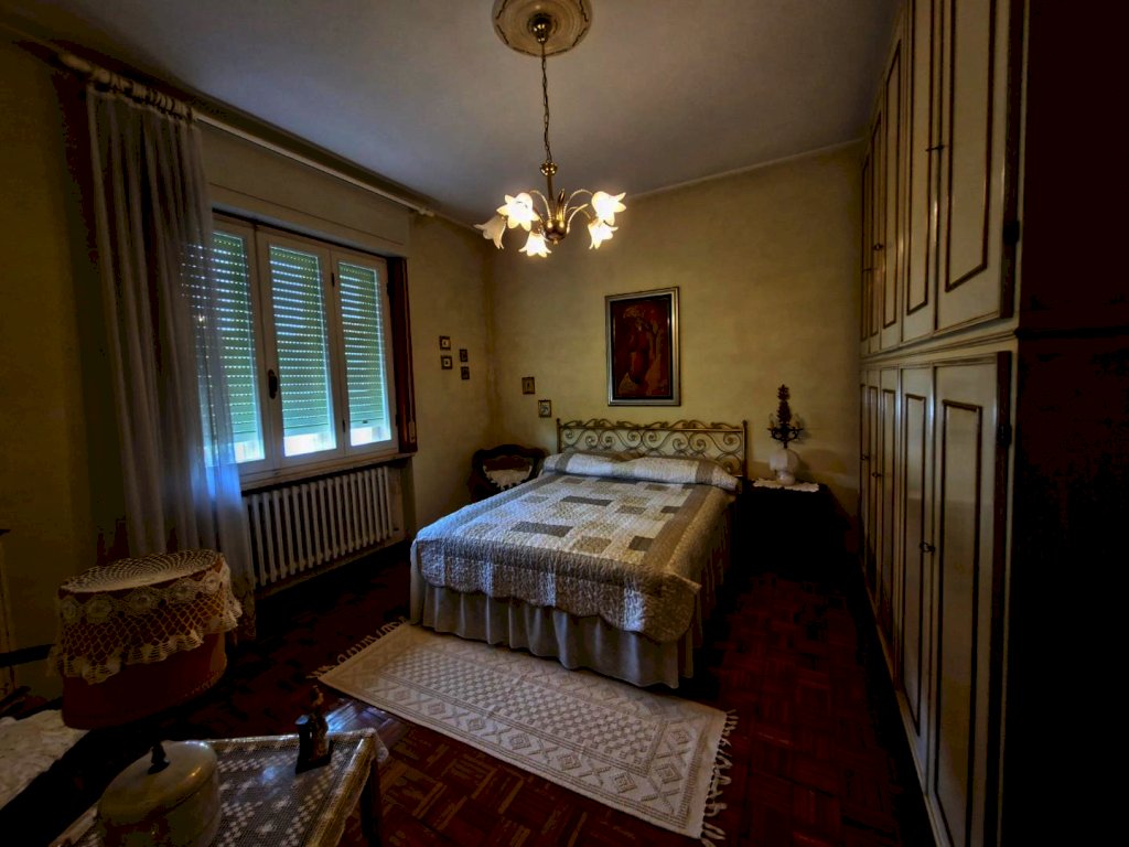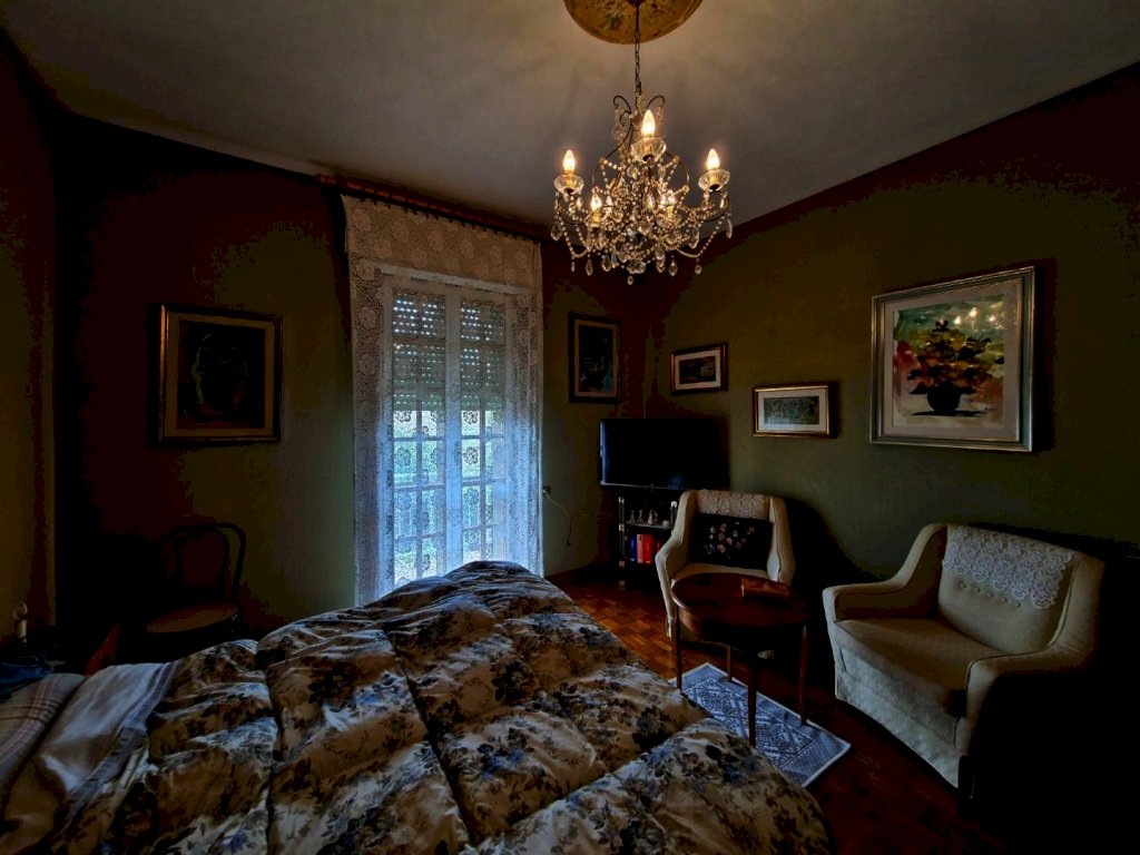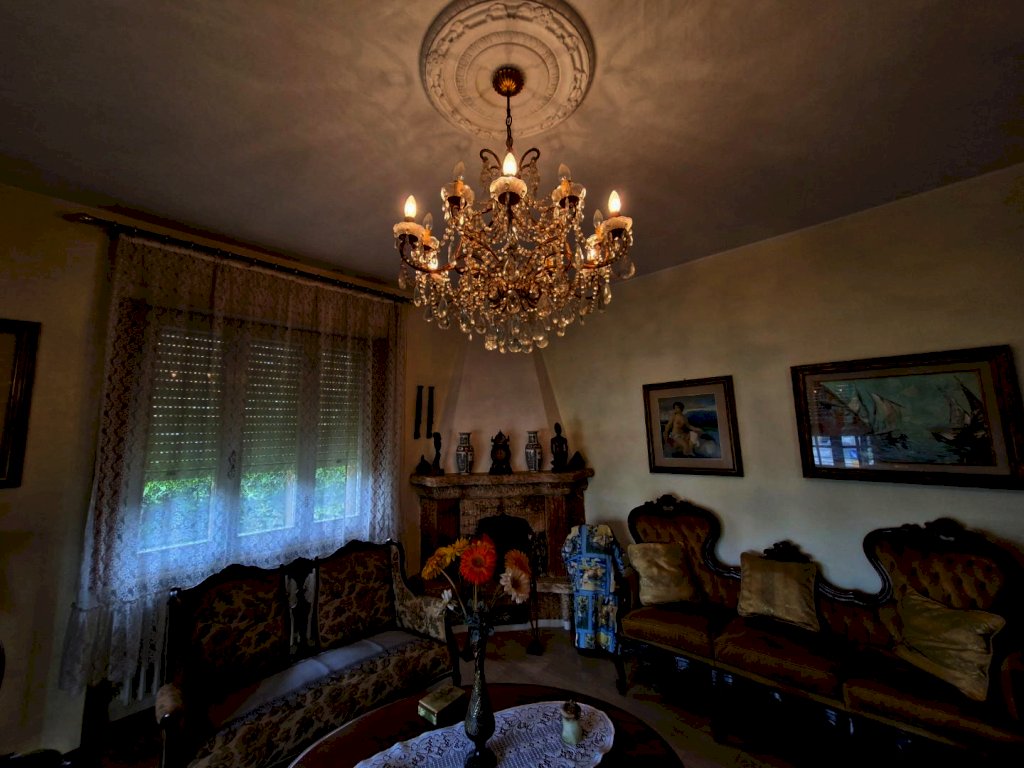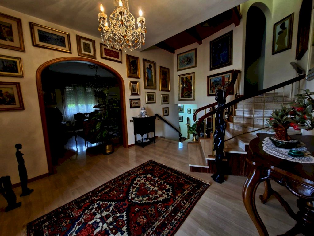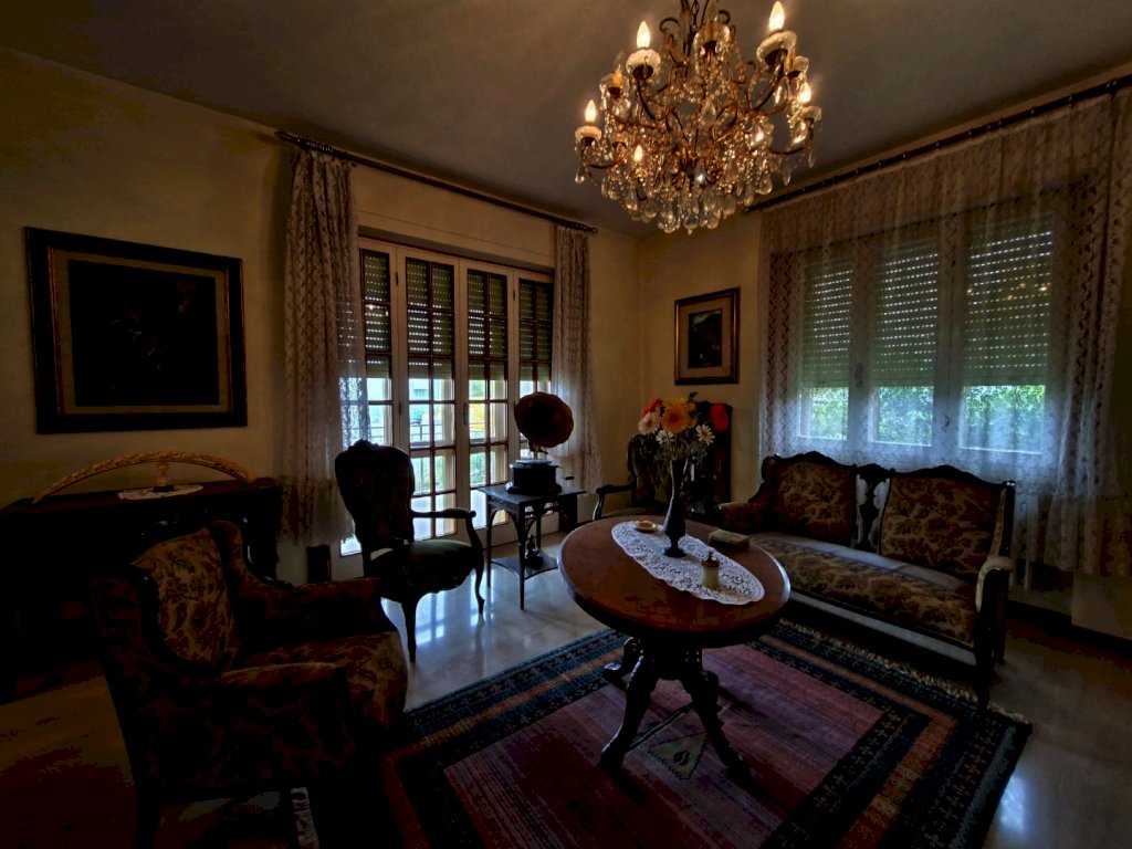 Villa indipendente a due passi dal centro con ampio giardino. L’immobile ha una superficie di mq 287 ed è composta al piano rialzato da un porticato in entrata, un ampio ingresso, sala pranzo, cucinotto e ampio soggiorno con camino, tre scalini collegano il piano rialzato con il piano terra dove troviamo un soggiorno con camino, un cucinotto un bagno ed un locale di sgombero. Grazie ad una piccola scala si accede al piano primo composto da un lungo corridoio che mette in comunicazione il bagno, tre camere matrimoniali di cui una con balcone ed un piccolo studio.