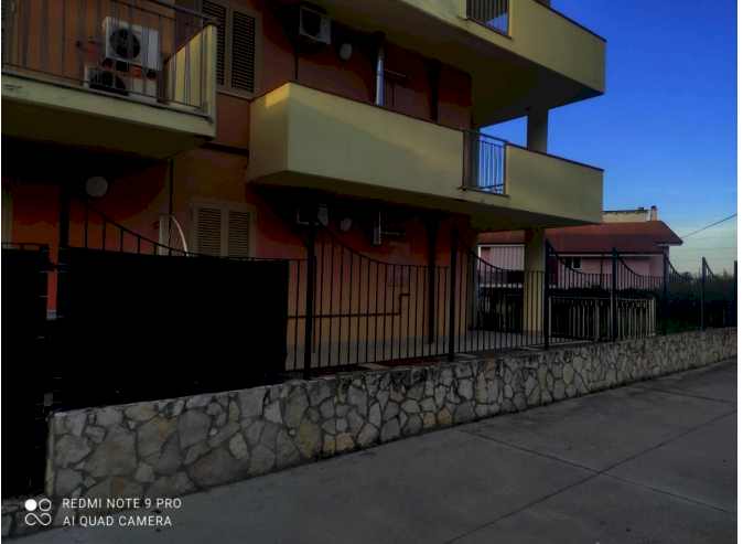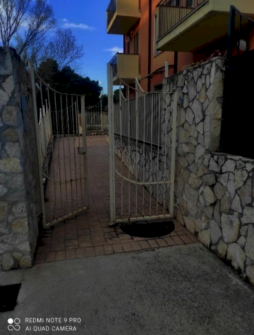 L'appartamento al piano terra è composto di due vani, bagno, cucina e disimpegno, con corte esclusiva recintata su due lati; l'accesso avviene sia dall'ingresso condominiale che dalla corte esclusiva; - il locale magazzino al piano interrato, sottostante l'appartamento avente accesso da scale condominiali e collegabile al sovrastante appartamento tramite scala, prevista nei titoli abilitativi su apposita apertura posta sul lastrico solare antistante l'appartamento.