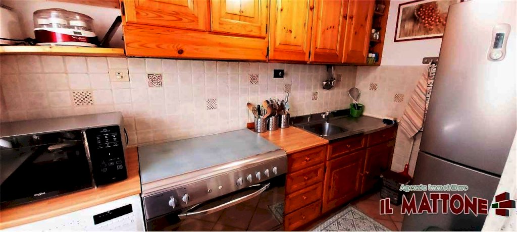 In posizione panoramica e luminosa dalla mattina alla sera, proponiamo abitazione, termoautonoma, completamente riordinata recentemente, composta ingresso/corridoio cui si accede a tutti i locali dell'abitazione, un angolo cottura e soggiorno con accesso alla balconata angolare con vista panoramica, poi proseguendo troviamo un bel salone di buone dimensioni, il bagno completo e la camera matrimoniale, una dispensa e una seconda grande camera inoltre oltre a ció la proposta comprende un 'ampio sottotetto mansardato con altezza utilizzabile raggiungibile direttamente dalla scala condominiale, quest'ultimo è suddiviso in un grosso salone, un bagno completo e un angolo cucina, infine al piano terra abbiamo un ampio box di circa 35 mq. La proprietà si trova decisamente rialzata rispetto al fondovalle dove si trova la strada principale e ció fa si che la casa sia esposta al sole tutto il giorno.