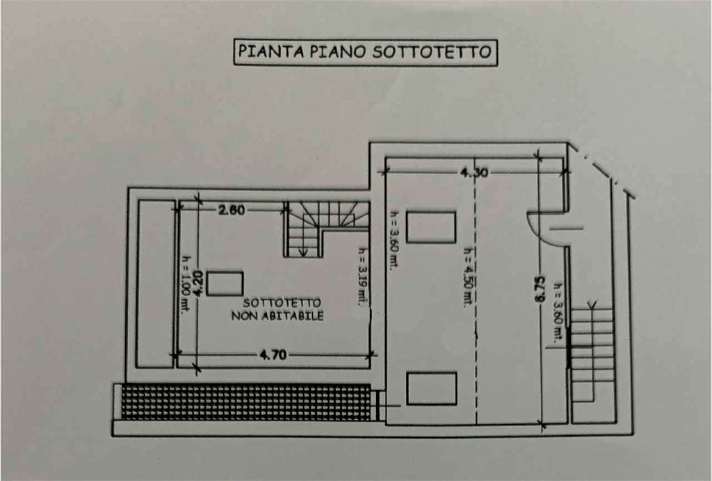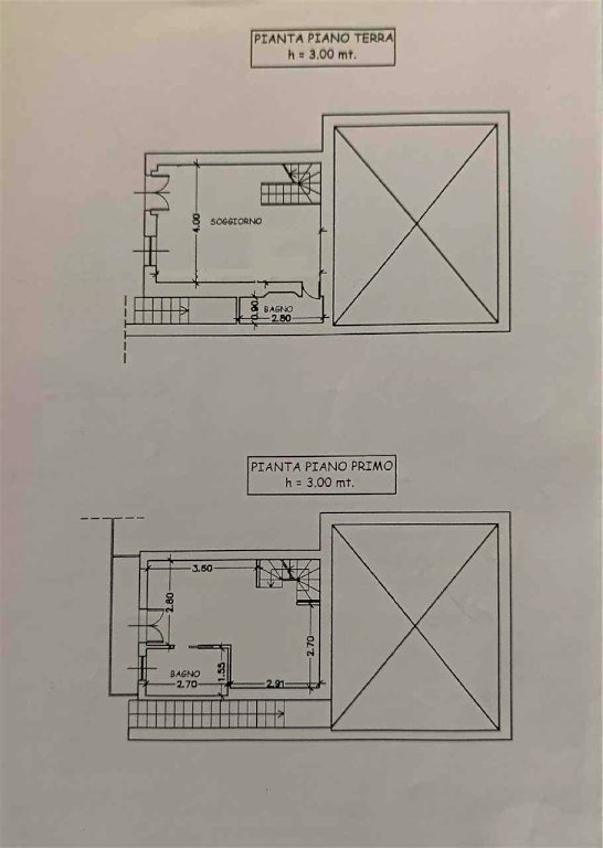 L'alloggio posto al piano terra è composto da: ingresso, un vano, bagno e ripostiglio in vano a parte, scala al piano superiore; al piano primo da scala, un vano con angolo cottura, bagno, balcone e al piano secondo troviamo una scala e vano sottotetto.