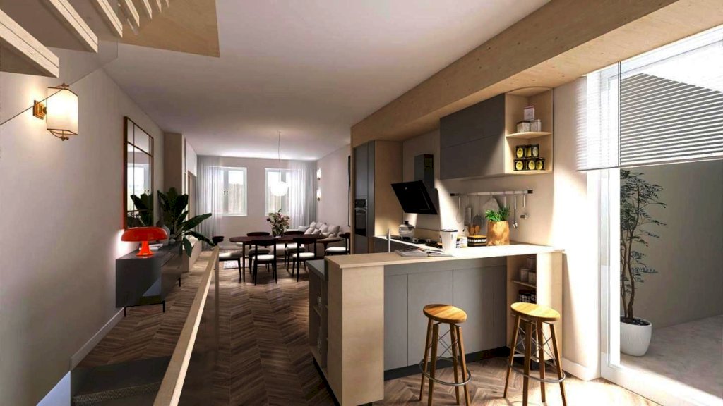 L'immobile si compone di luminoso soggiorno-pranzo con angolo cottura ed accesso ad ampia terrazza abitabile, disimpegno, camera matrimoniale e bagno al piano primo; ampia camera, bagno e ampio vano soffitta al piano secondo mansardato.
