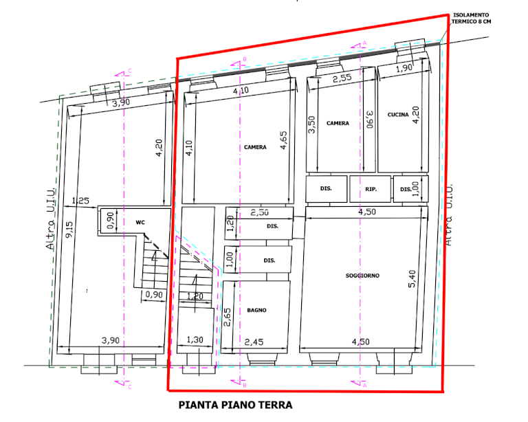 Cappotto termico esterno (12 cm).