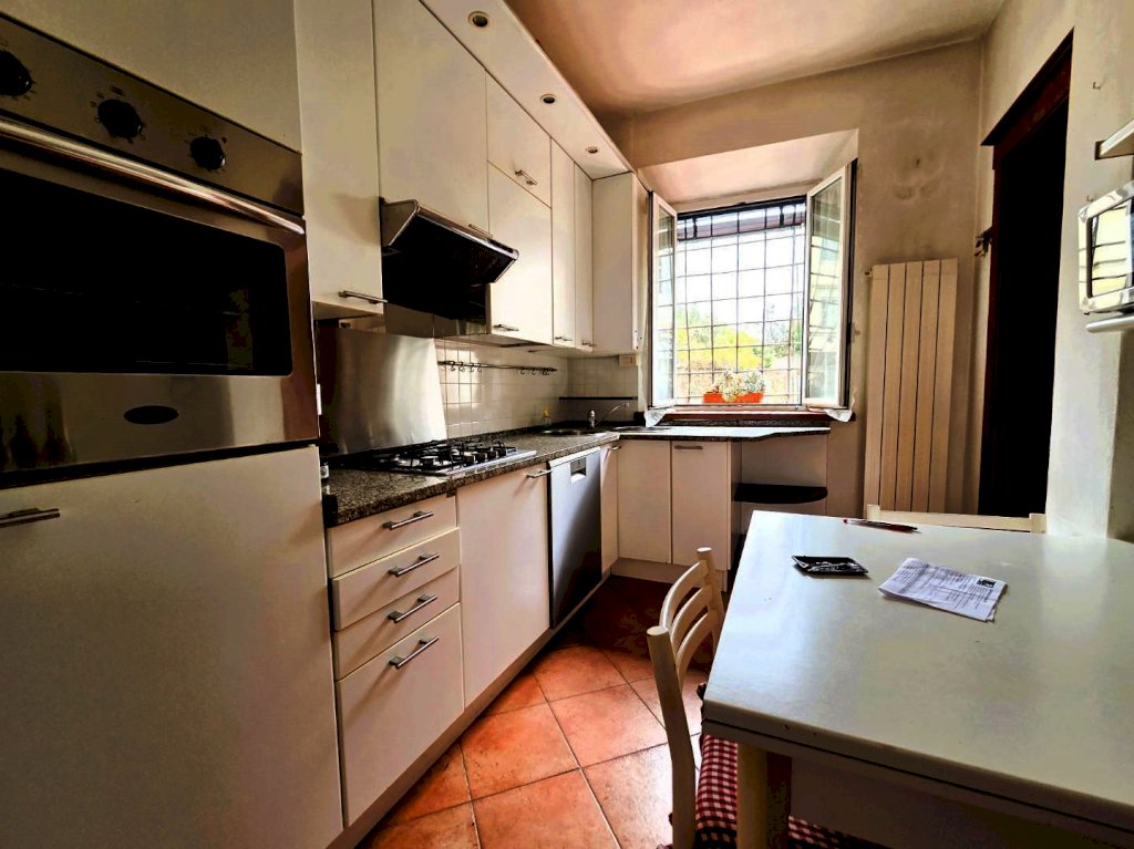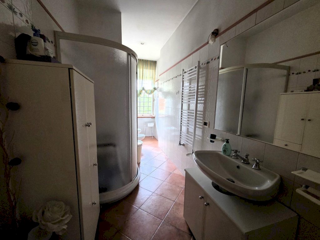 Completano la proprietà due ampie resedi, un ripostiglio esterno ad uso lavanderia e rimessaggio, oltre a due posti auto scoperti nella corte. Pavimenti in gres, infissi in alluminio con vetrocamera e caldaia sostituita due anni fa.
