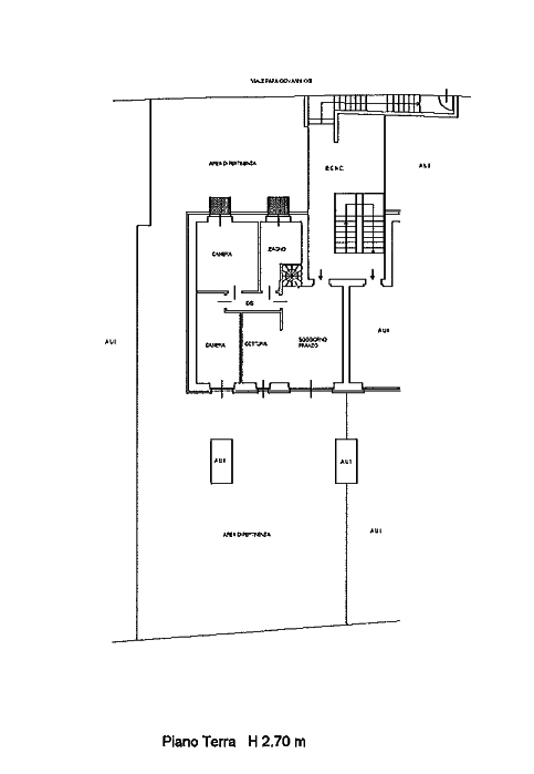 L'alloggio è composto da cucina-soggiorno, disimpegno, bagno e due camere, con annessa circostante area esterna di