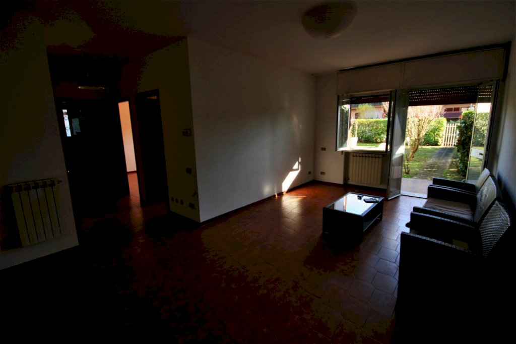 RIF. 038 Marina di Carrara in zona residenziale a 600 mt dal centro commerciale naturale e a 800 mt dalle spiagge, vendiamo in piccola ed elegante palazzina, appartamento al piano terra con grande e luminosissimo giardino di oltre 200 mq; internamente troviamo uno spazioso ingresso, un soggiorno ampio, una cucina abitabile, 2 camere ed un bagno. Possibilità di ampliare la zona notte allungando la cameretta ed il bagno e ricavando una cantina con accesso dal giardino di mq 10, sfruttando una veranda condonata di circa 25 mq. Posto auto coperto ed esclusivo ubicato all' interno del Residence. Termoautonomo, videocitofono, libero subito, classe energetica E. Euro 295000 tratt.
