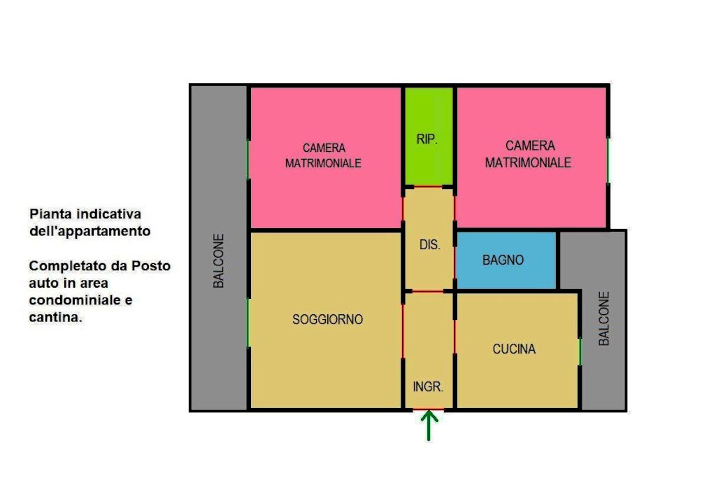 APPARTAMENTO 2 CAMERE MATRIMONIALI CON CANTINA E POSTO AUTO